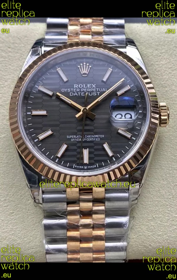 Rolex Super Clone Datejust ETA 3235 Movement 36MM Two Tone Yellow Gold Grey Fluted Dial Watch