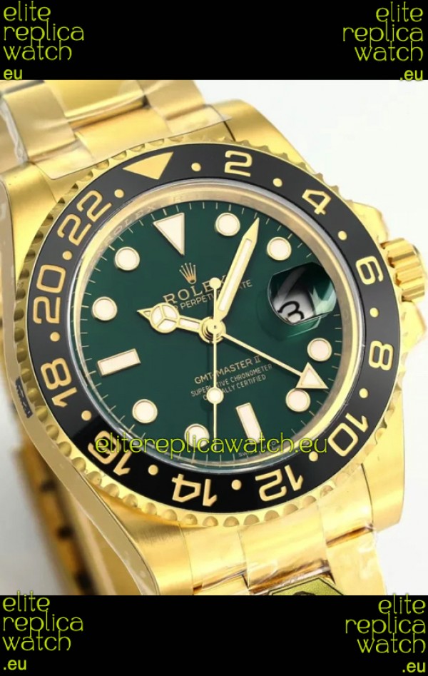 Rolex GMT Masters II Super Clone M116718 Yellow Gold Green Dial Swiss Replica Watch