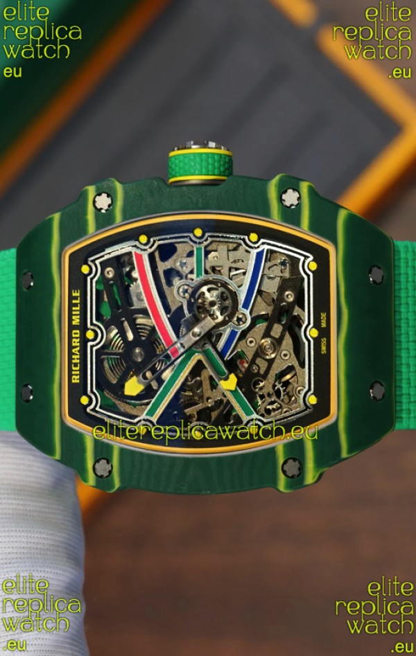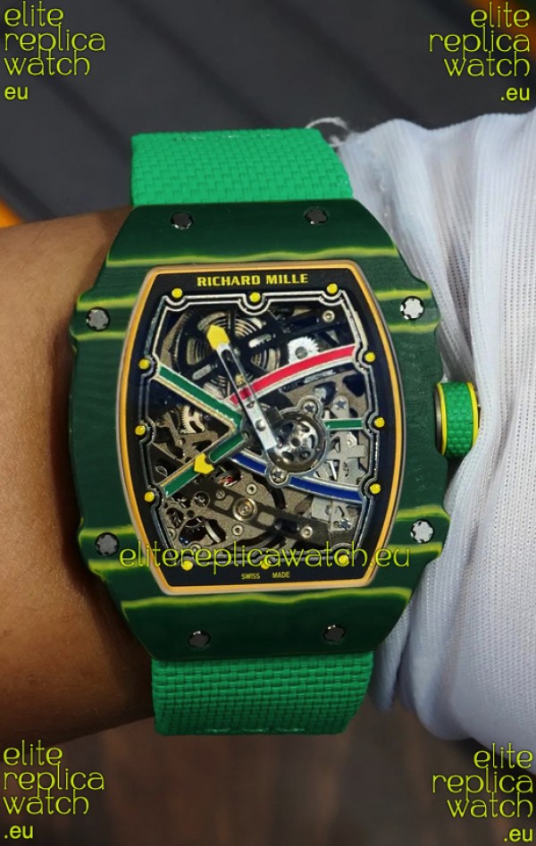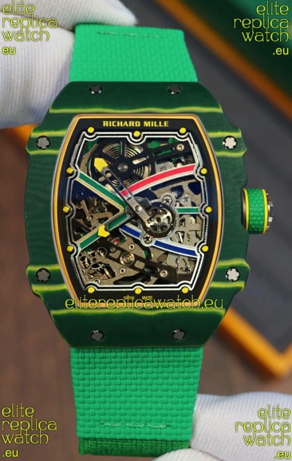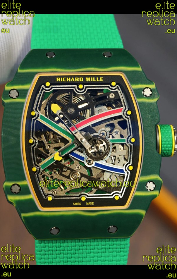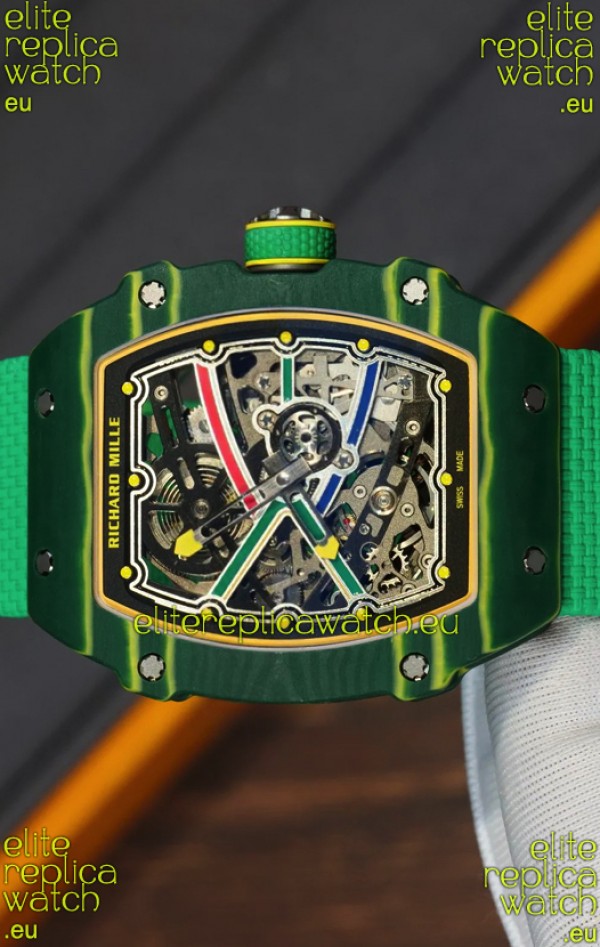 Richard Mille Super Clone RM67-02 Wayde Van Niekerk Green Carbon TPT 37 Grams Watch Green Strap