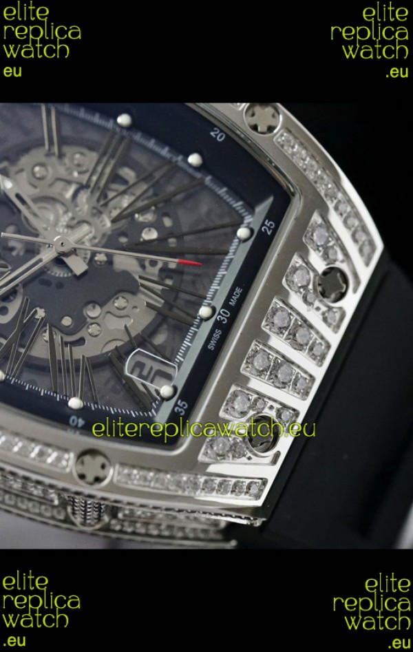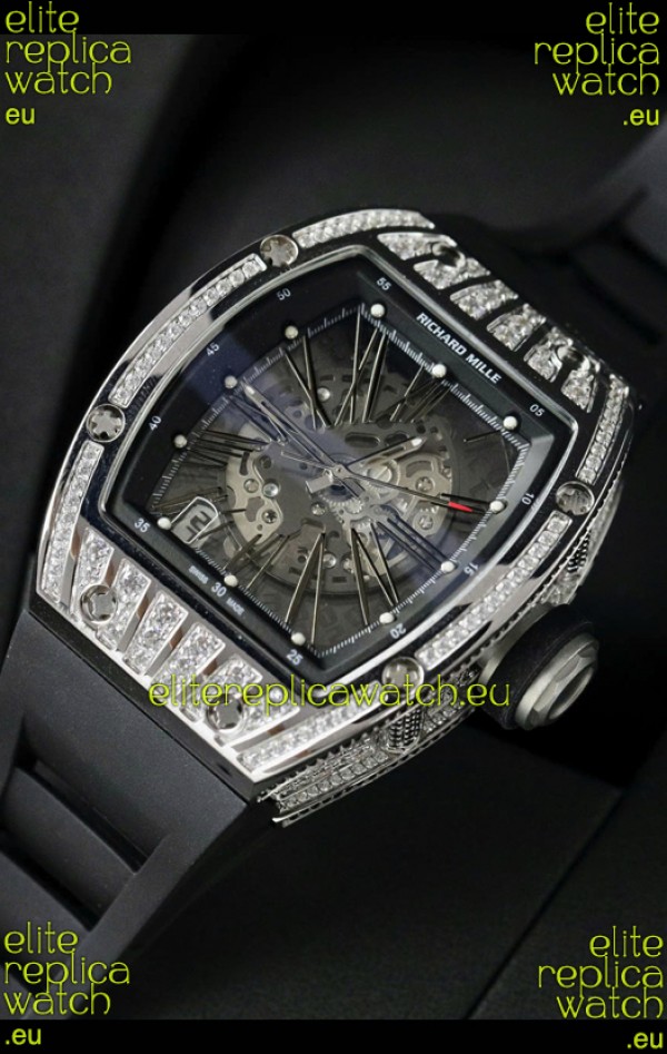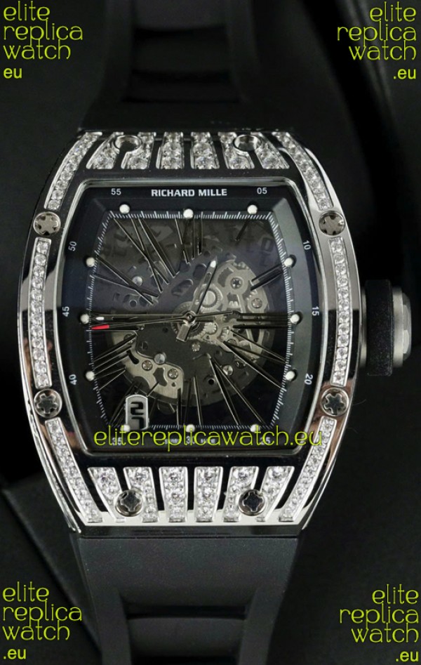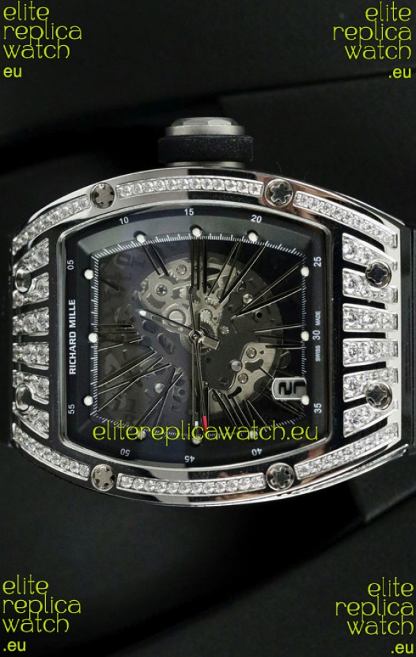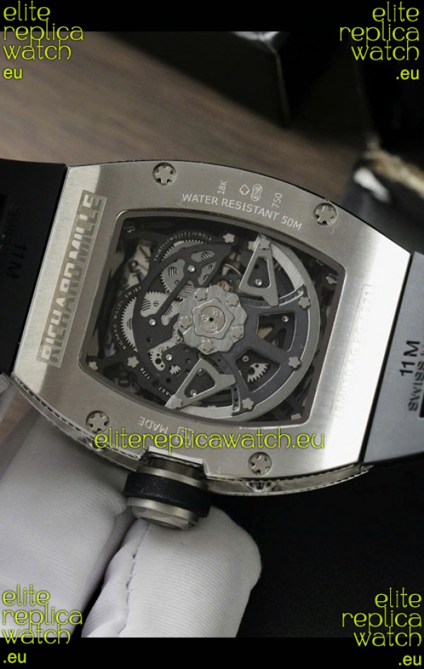 Richard Mille RM010 Stainless Steel Replica Watch in Black Strap