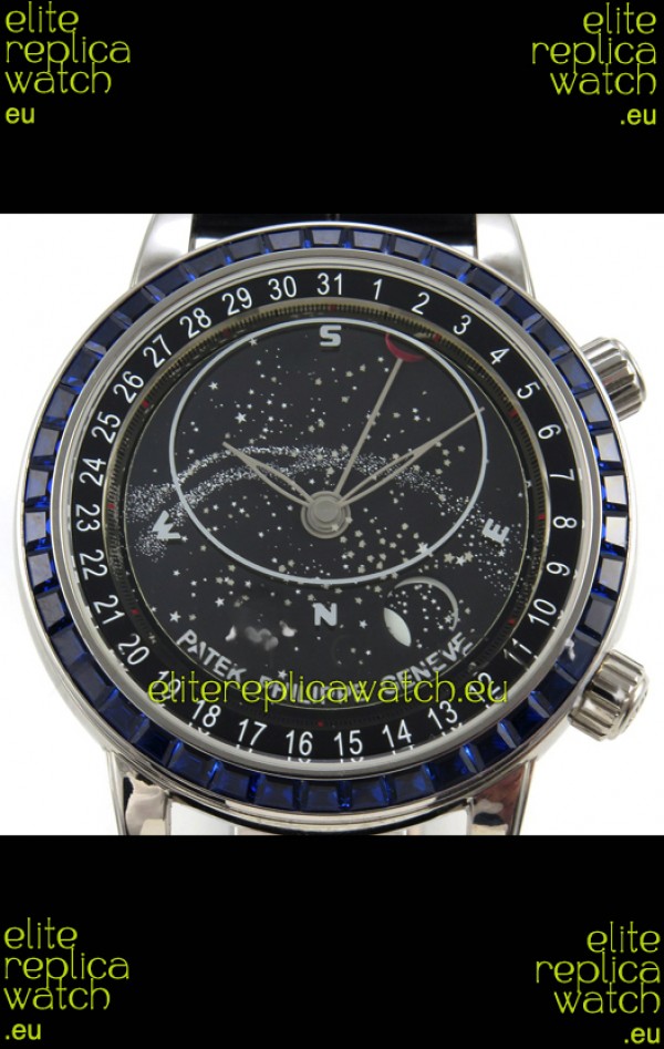 Patek Philippe Grand Complications 6102 Black Dial Blue Diamonds Swiss Replica Watch