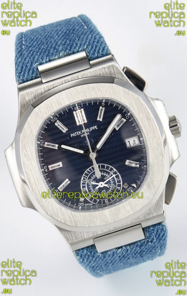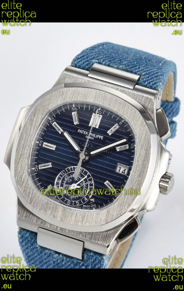 Patek Philippe Nautilus 5980/60G-001 Blue Dial Fabric Strap Crystal Numerals