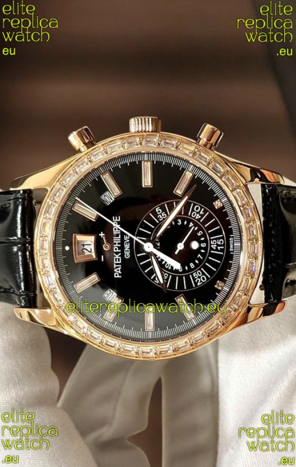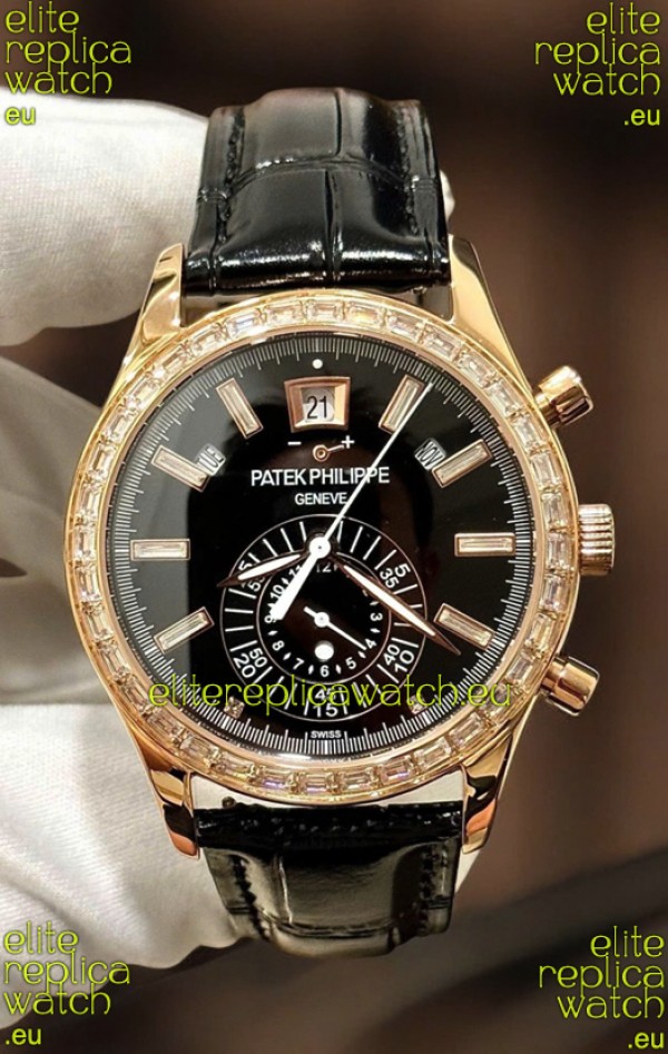 Patek Philippe Super Clone Complications 5961 Rose Gold Watch with Mossanites