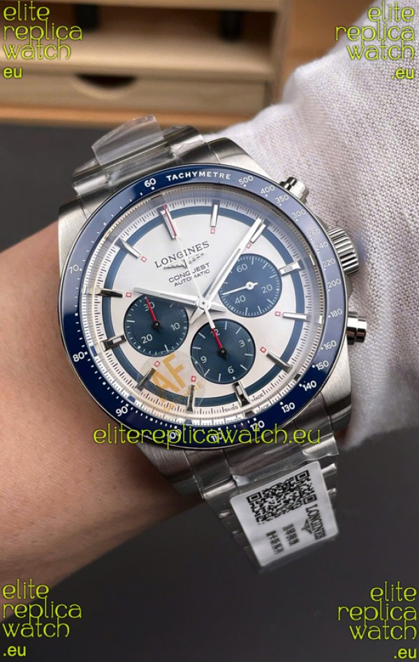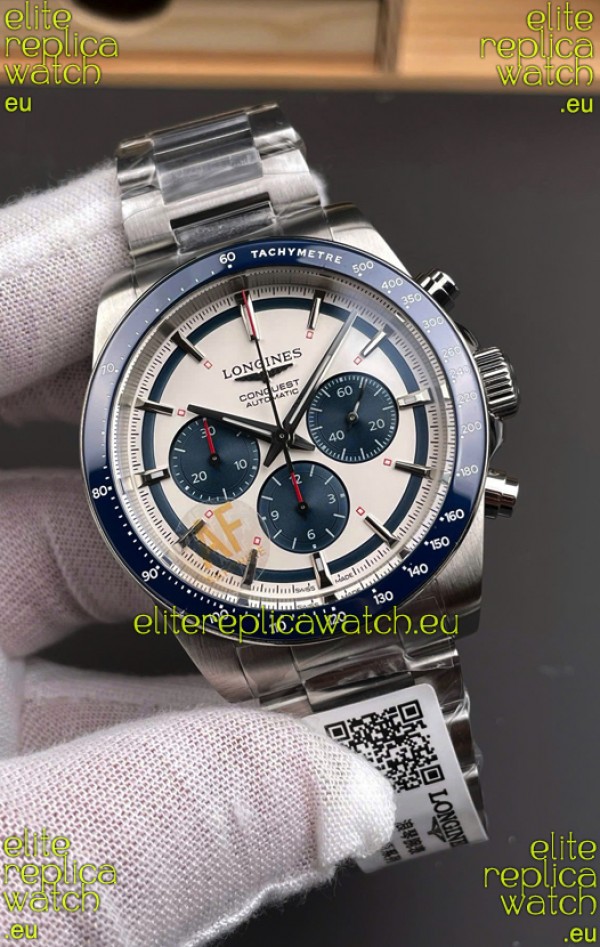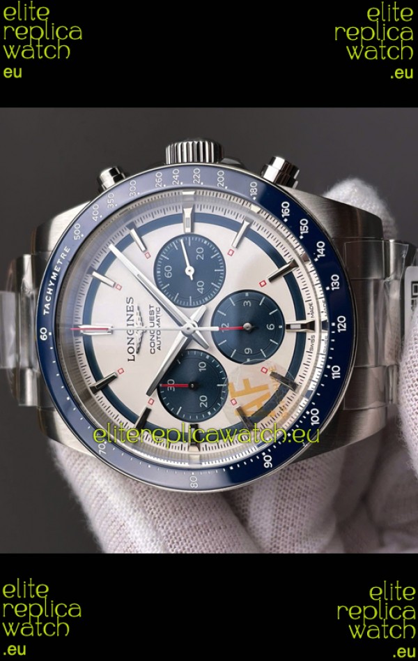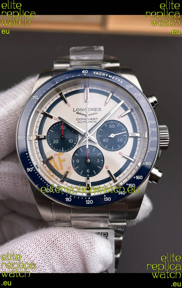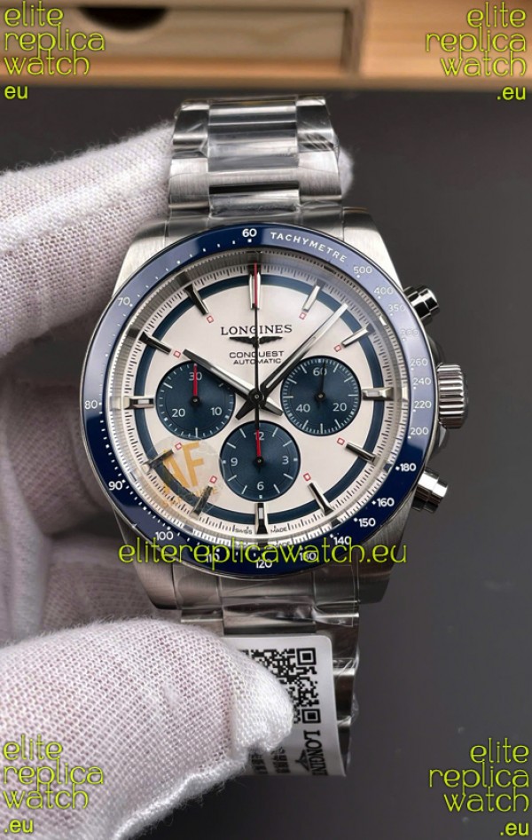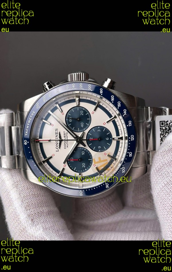 Longines Conquest Chronograph White Dial Automatic Watch in Steel Casing