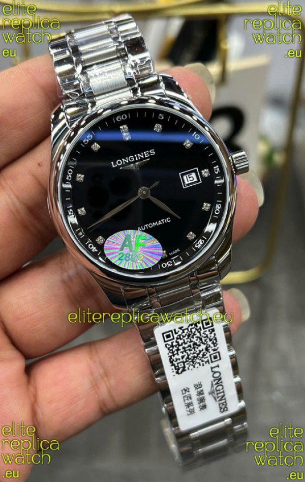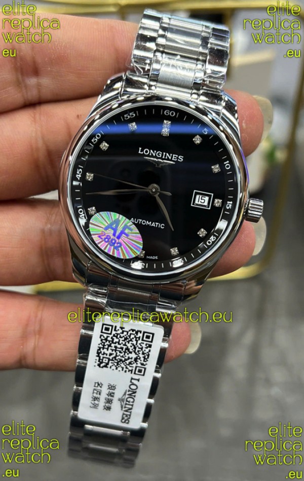 Longines Master Collection Automatic Moonphase Black Dial Swiss Replica Watch Steel Strap