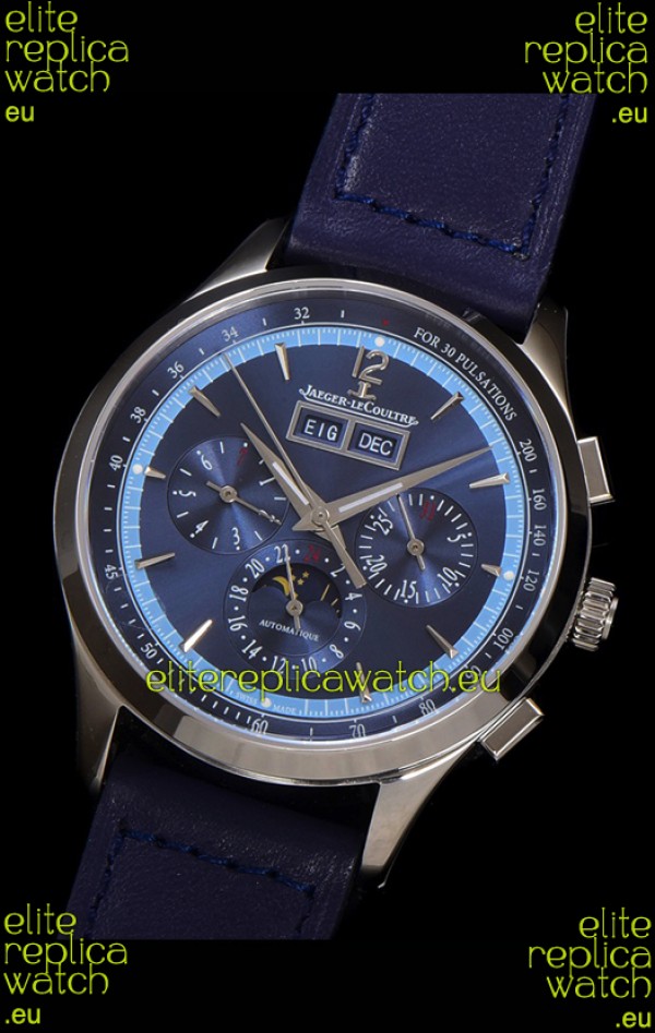 Jaeger LeCoultre Master Control Chronograph Calendar Steel Casing Blue Dial Watch