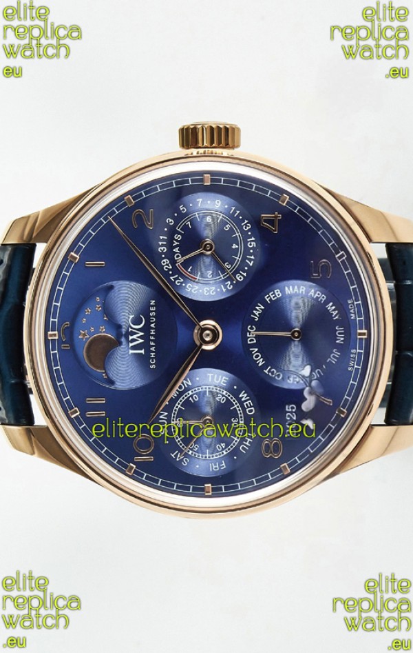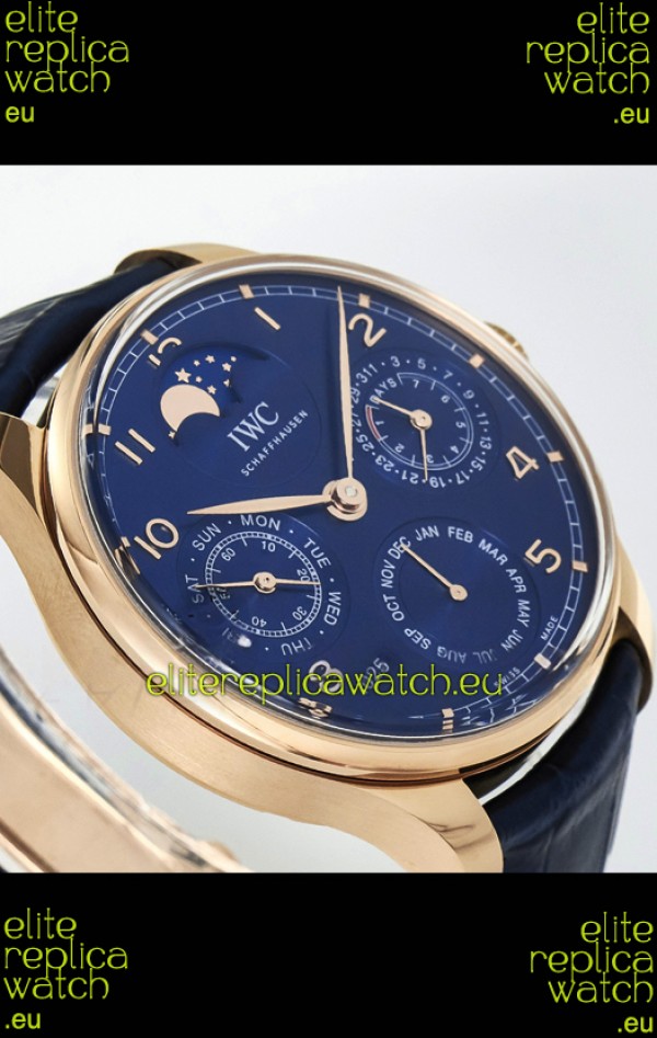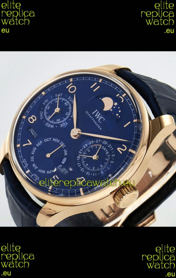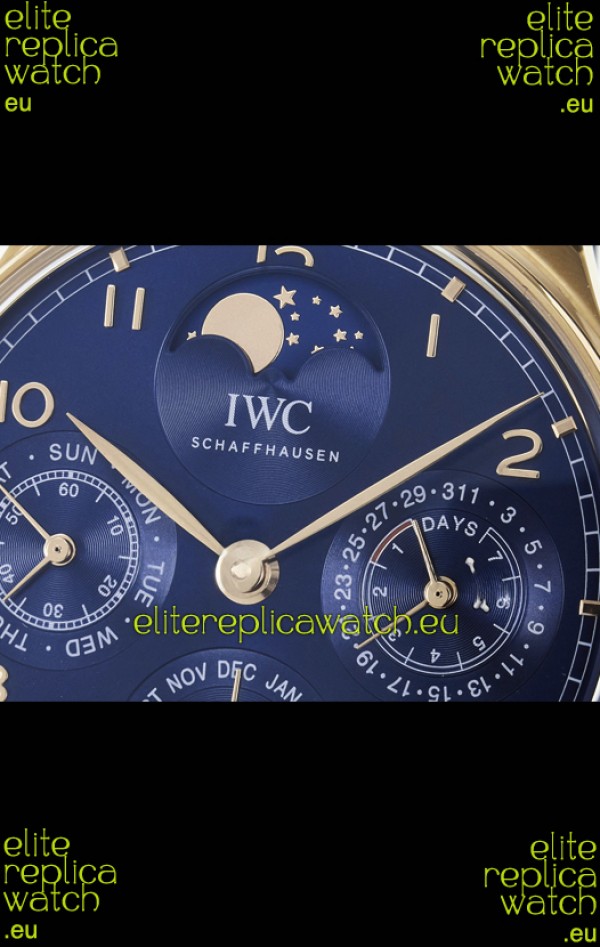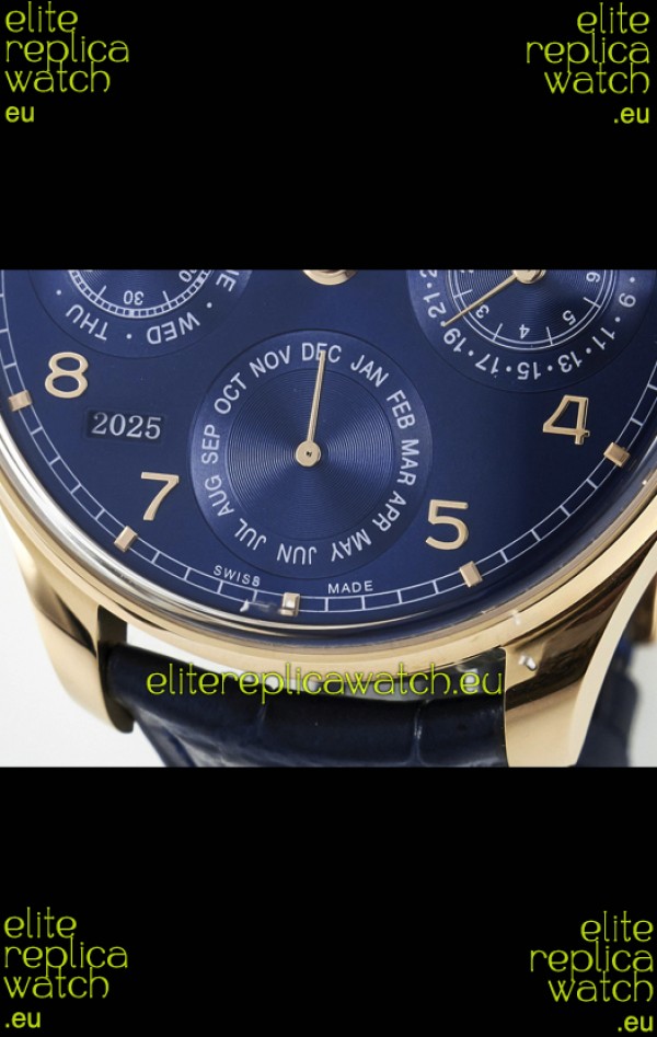 IWC Super Clone Portuguese Perpetual Calendar Rose Gold Blue Dial Replica Watch