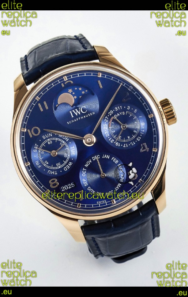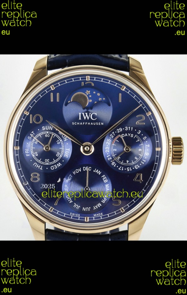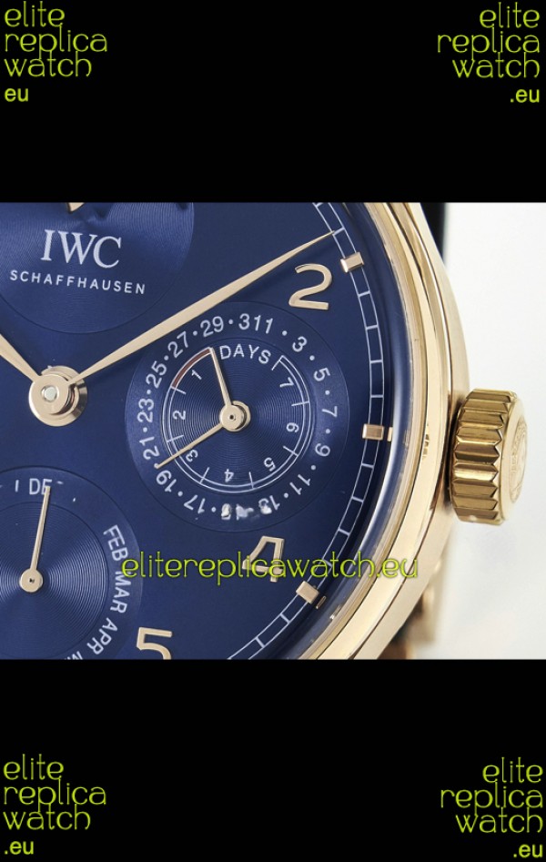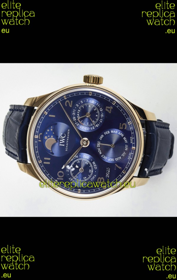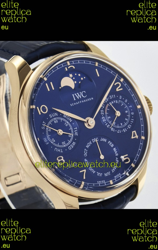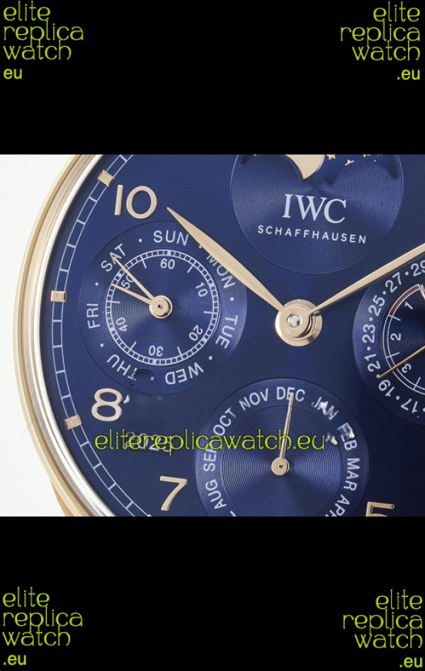 IWC Super Clone Portuguese Perpetual Calendar Rose Gold Blue Dial Replica Watch
