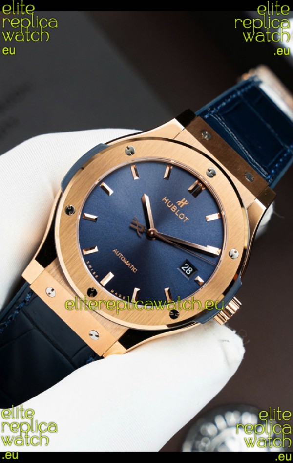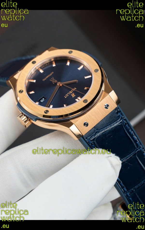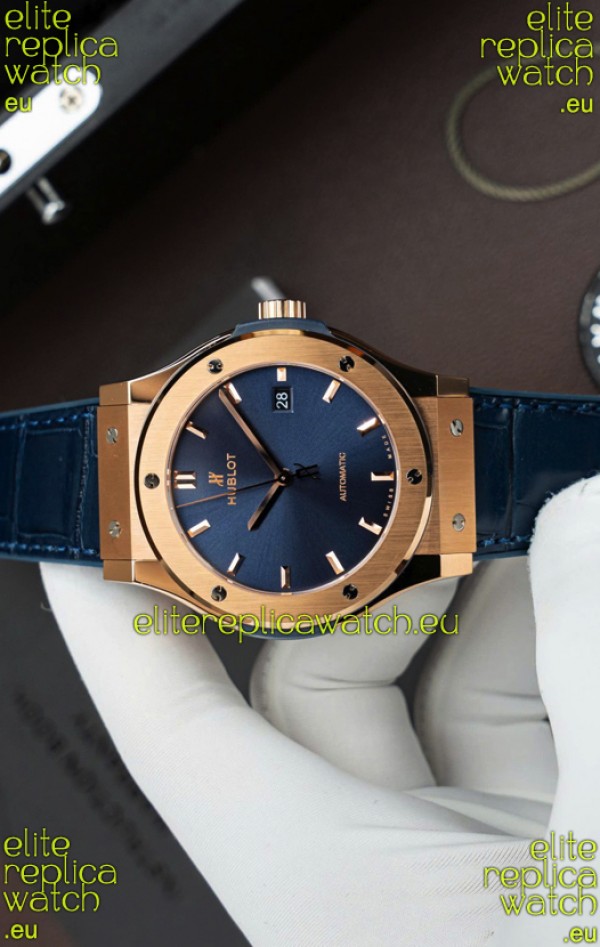 Hublot Super Clone Classic Fusion Titanium Rose Gold Blue Dial 42MM Watch