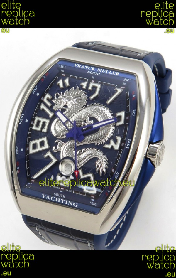 Franck Muller Vanguard Super Clone Yachting Dragon V45 Blue Dial Stainless Steel Case Watch