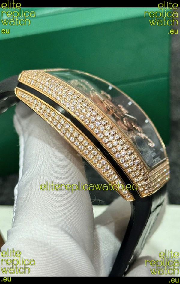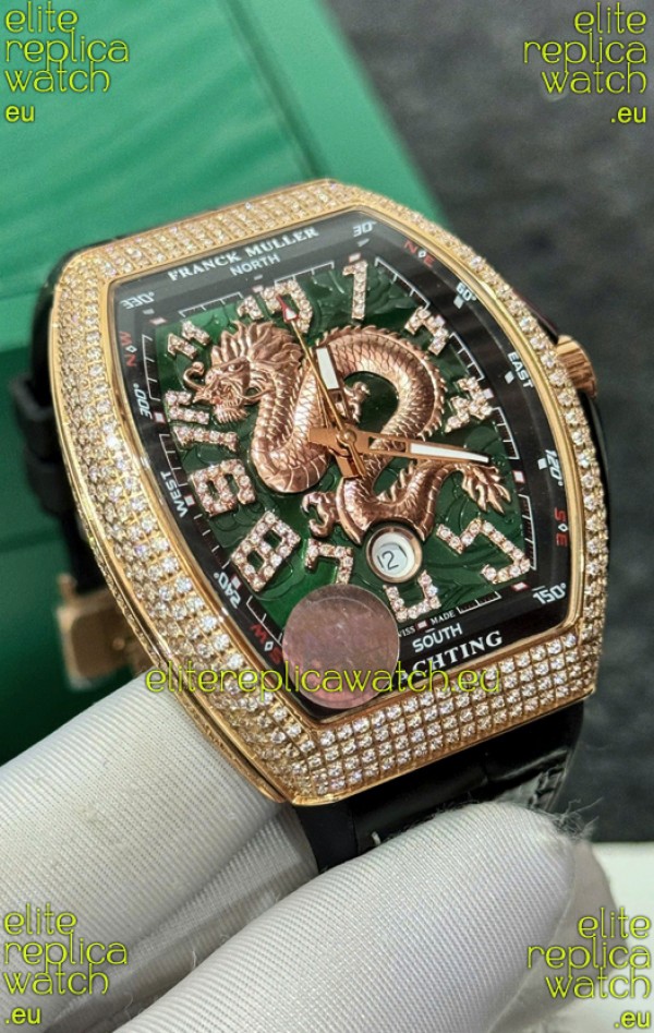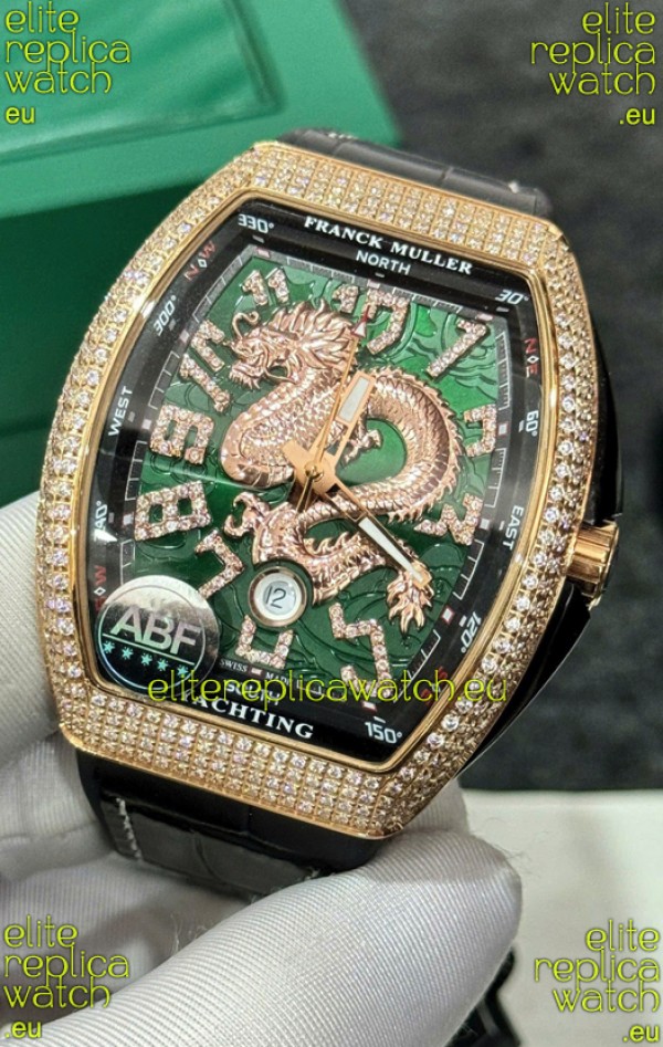 Franck Muller Vanguard Yachting Dragon V45 Green Dial in Gold Diamonds Bezel Swiss Replica