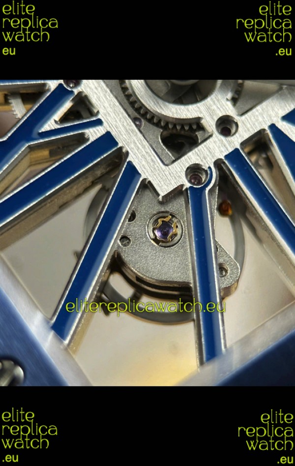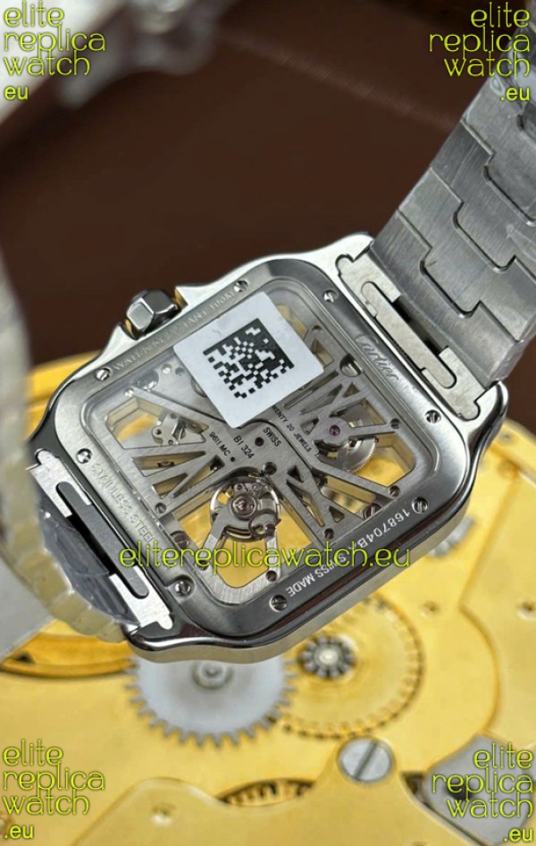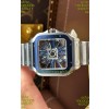 Santos De Cartier Super Clone Watch in Skeleton Dial Brushed Steel Casing Watch