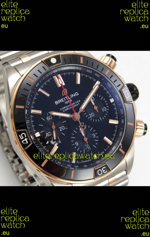 Breitling Chronomat Super Clone B01 42 Edition Swiss Two Tone Black Dial Watch
