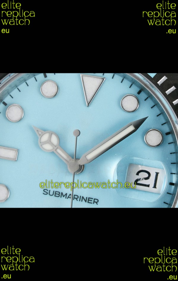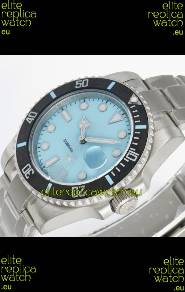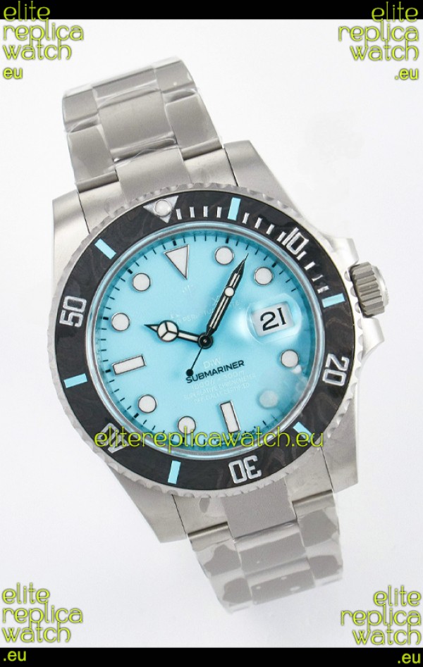 Rolex Submariner DiW Sandblasted Steel Casing Carbon Fiber Bezel Watch Tiffany Blue Dial