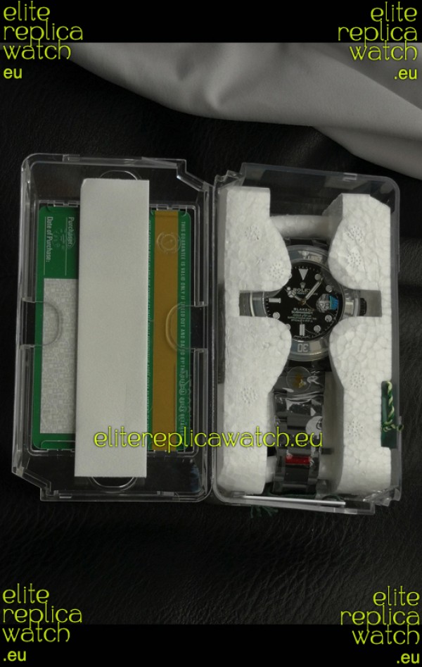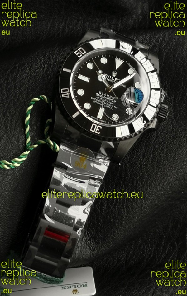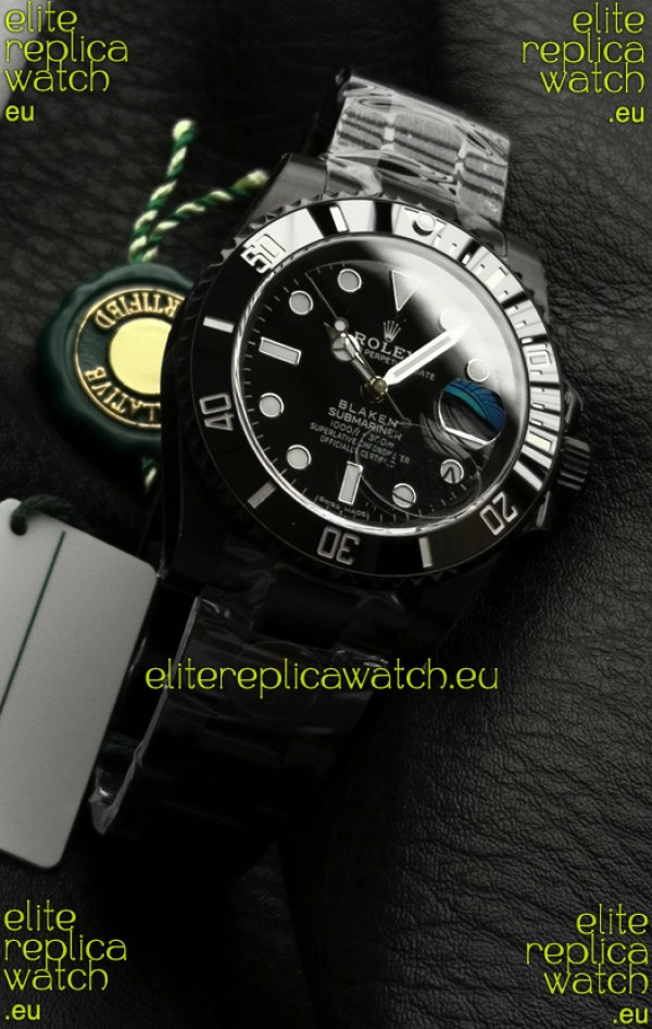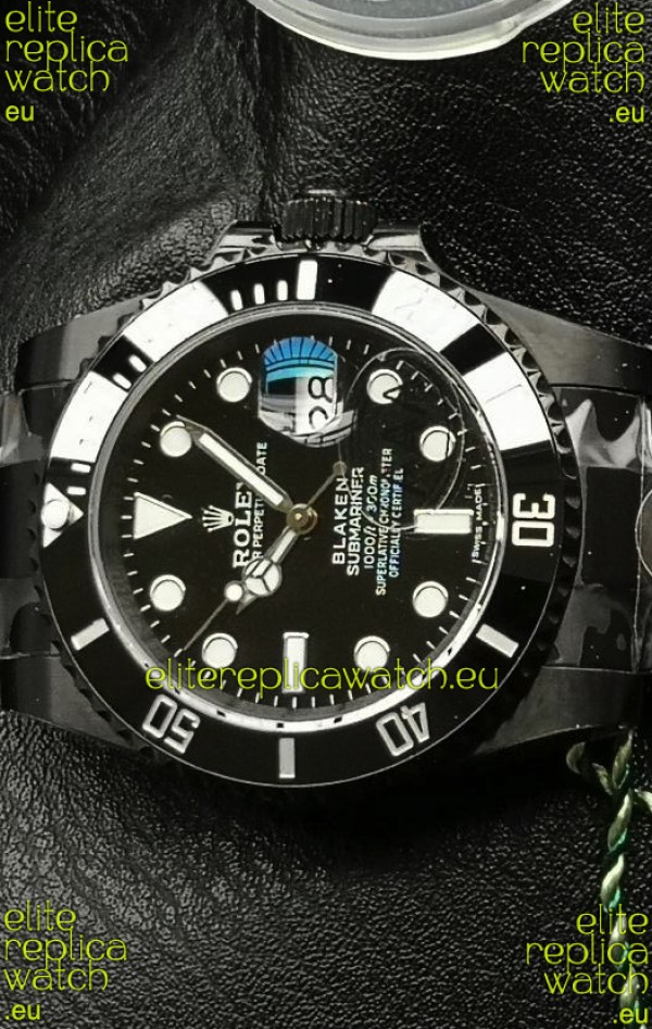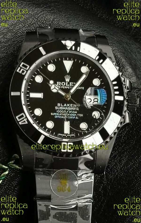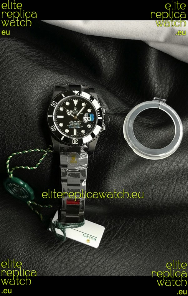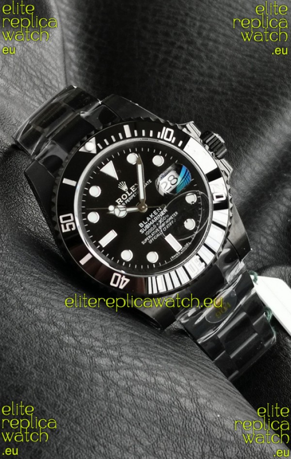 Rolex Submariner Blaken DLC Coated Swiss Replica Watch in Black Dial