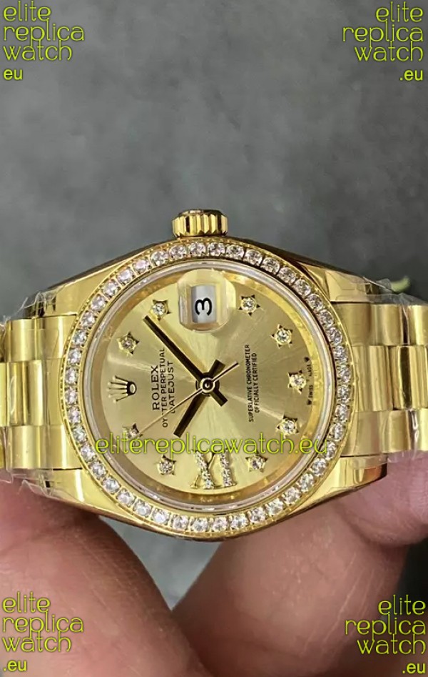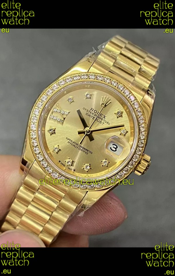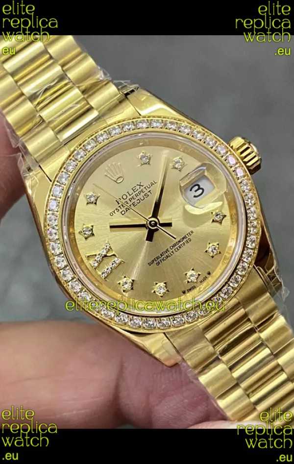 Rolex Datejust Super Clone Gold Dial Yellow Gold Casing Watch 28MM