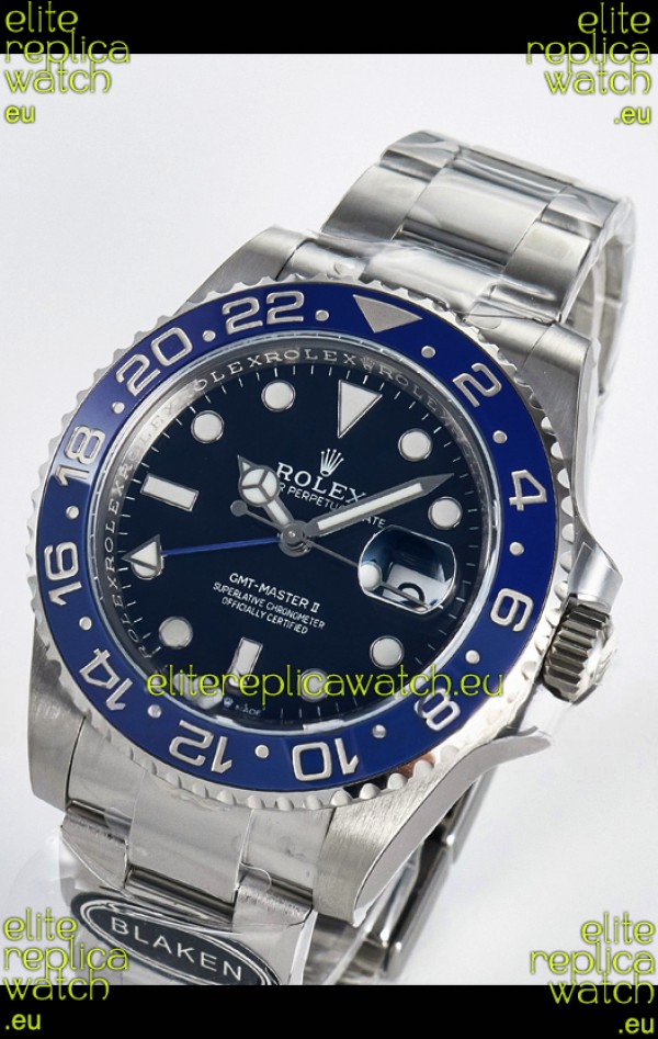 Rolex GMT Masters II Super Clone 126716 "Blaken" 904L Steel Blue Dial Watch