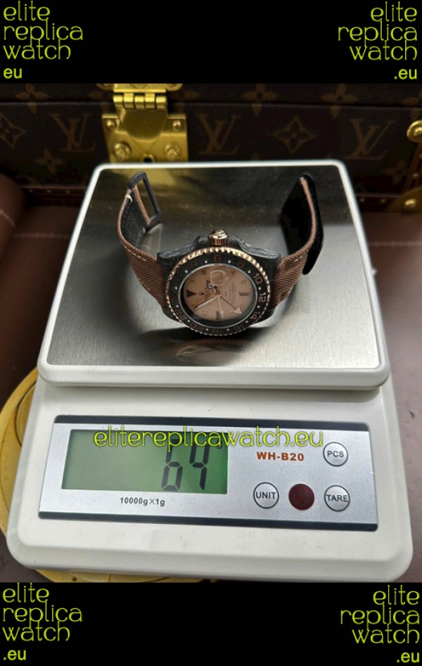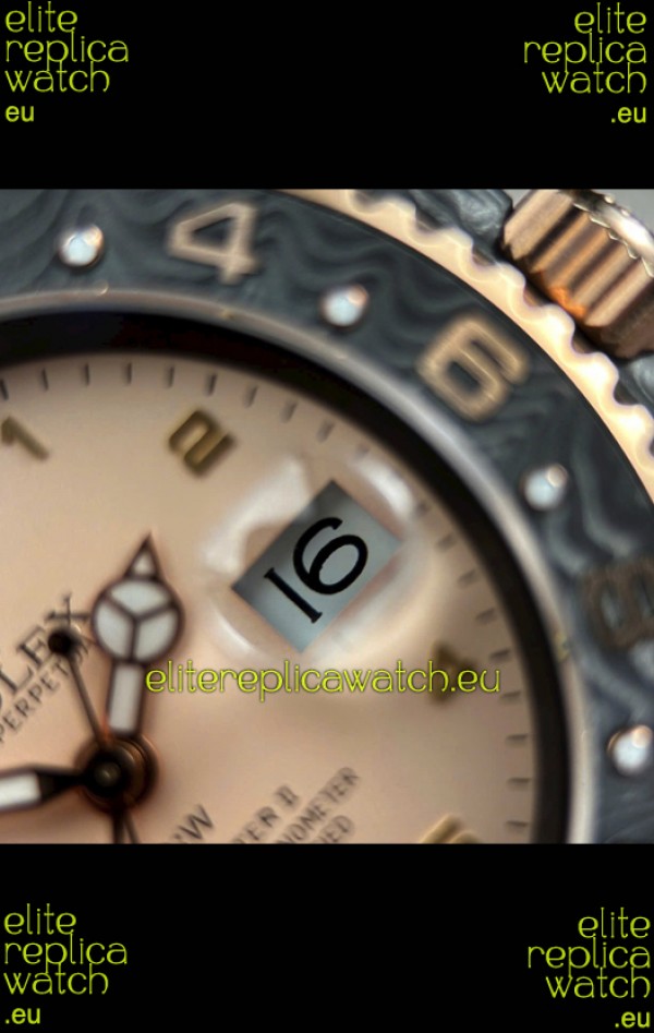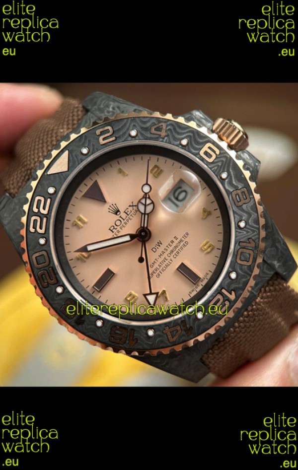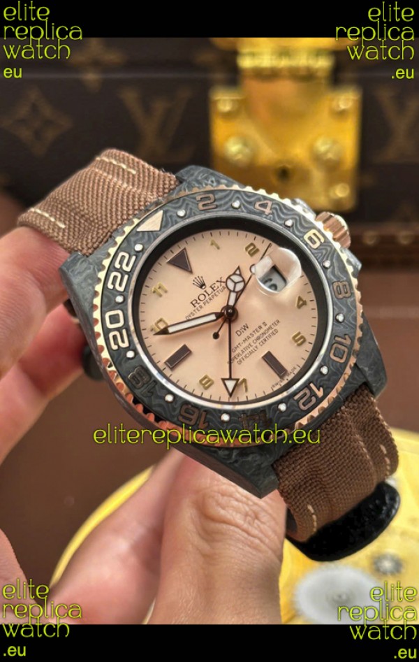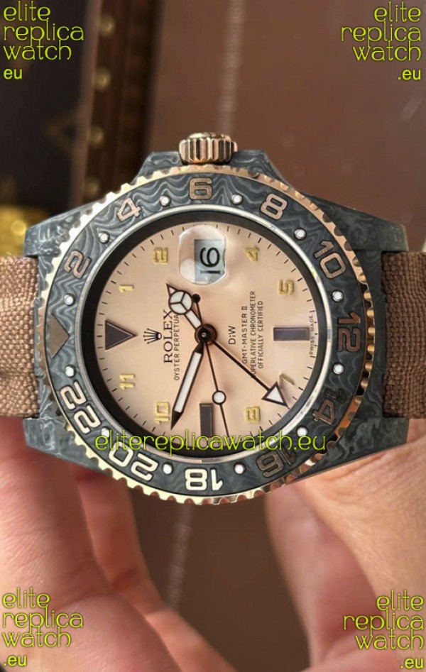 Rolex GMT Masters DiW Black Carbon Casing Swiss Replica Watch Beige Gray Dial