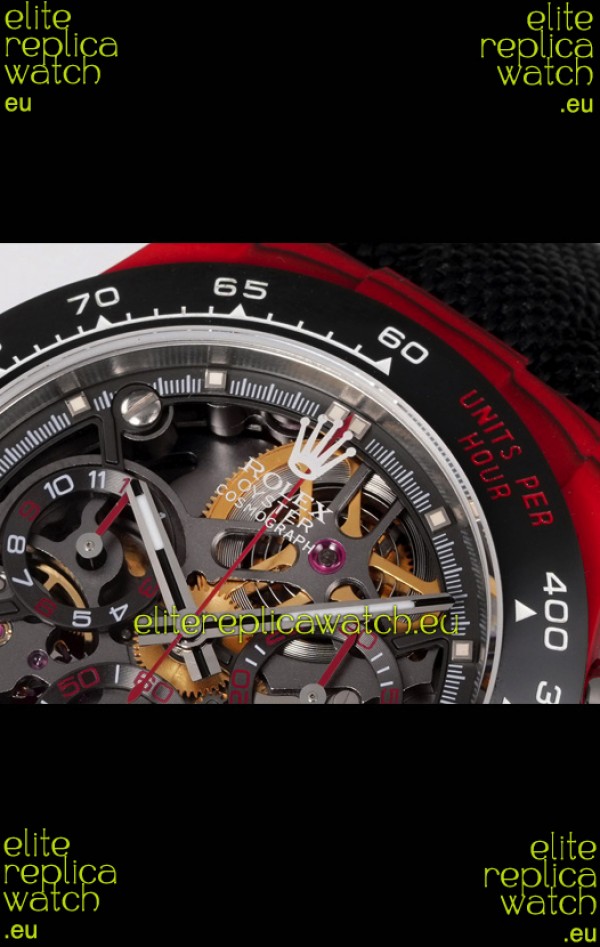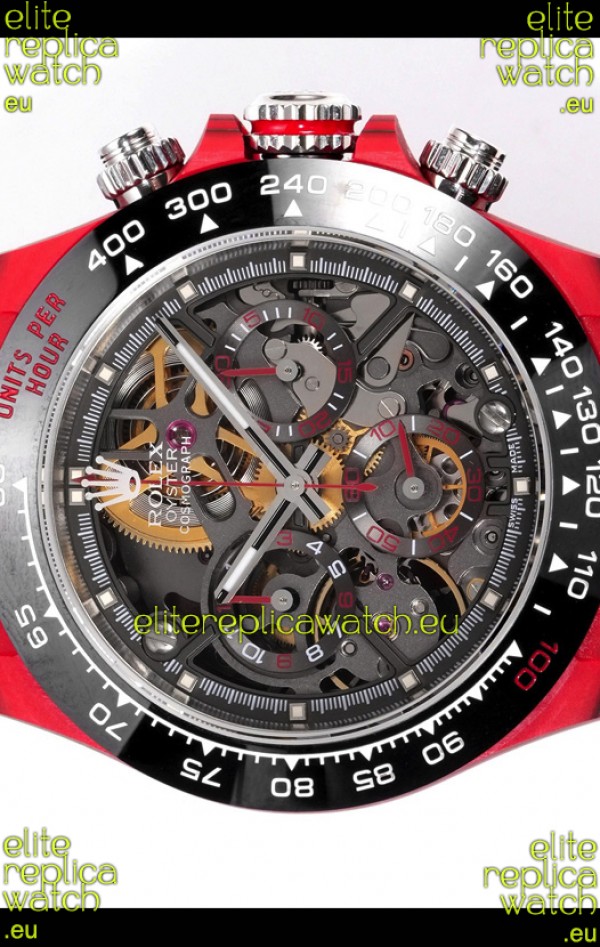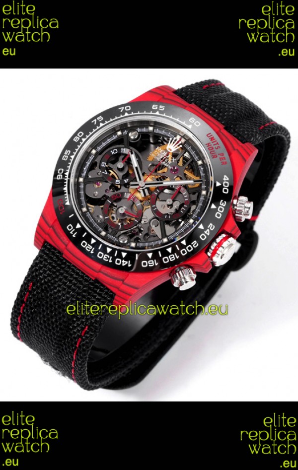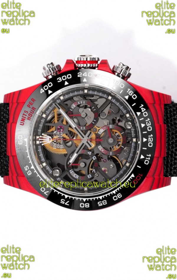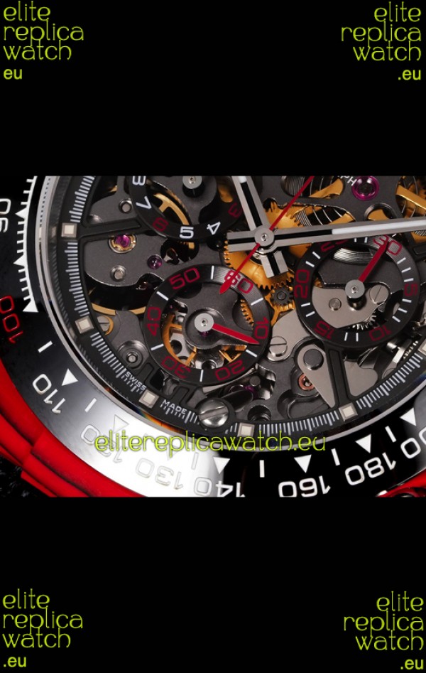 Rolex Daytona Blaken Red Carbon 1:1 Swiss Mirror Replica Skeleton Dial Cal.4130 Movement