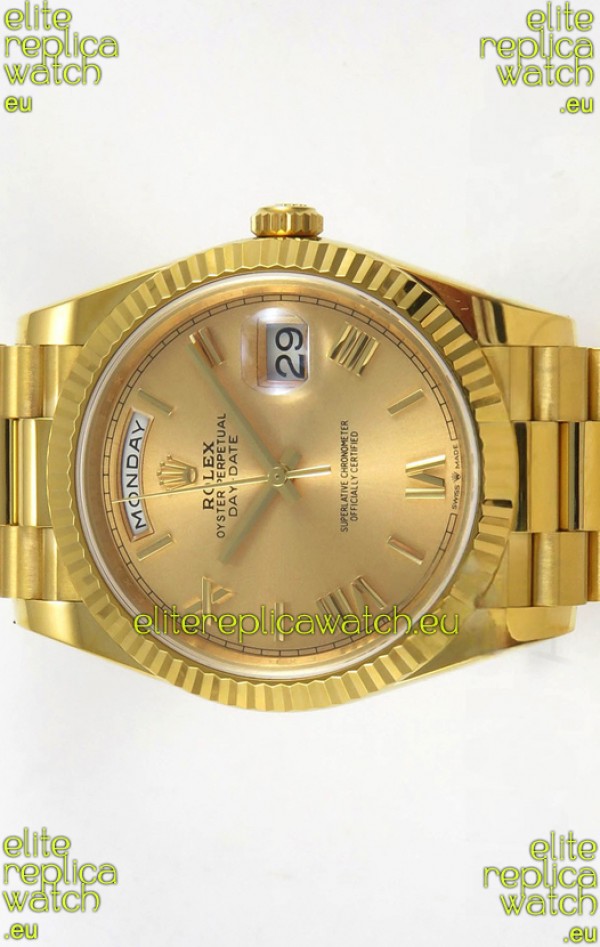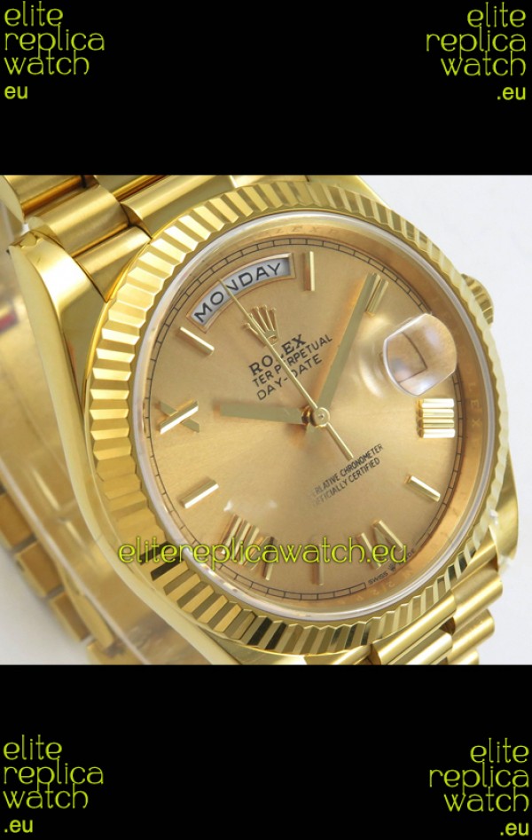 Rolex Day Date Super Clone Gold Roman Dial 40MM 220 Grams Swiss Replica watch