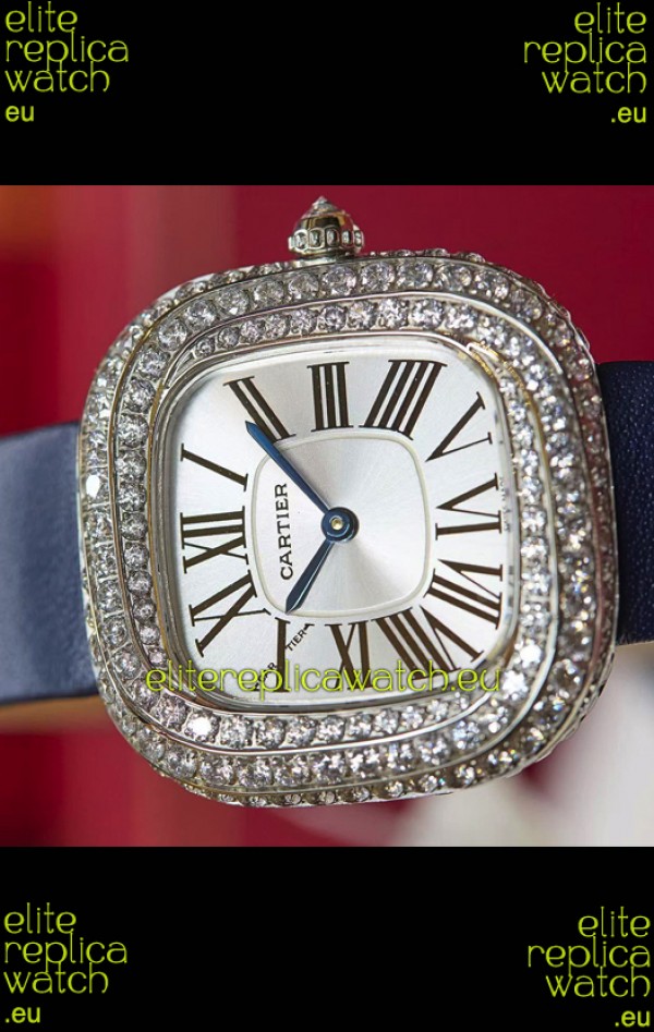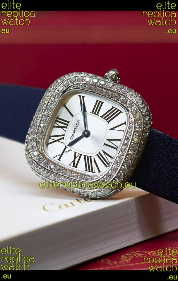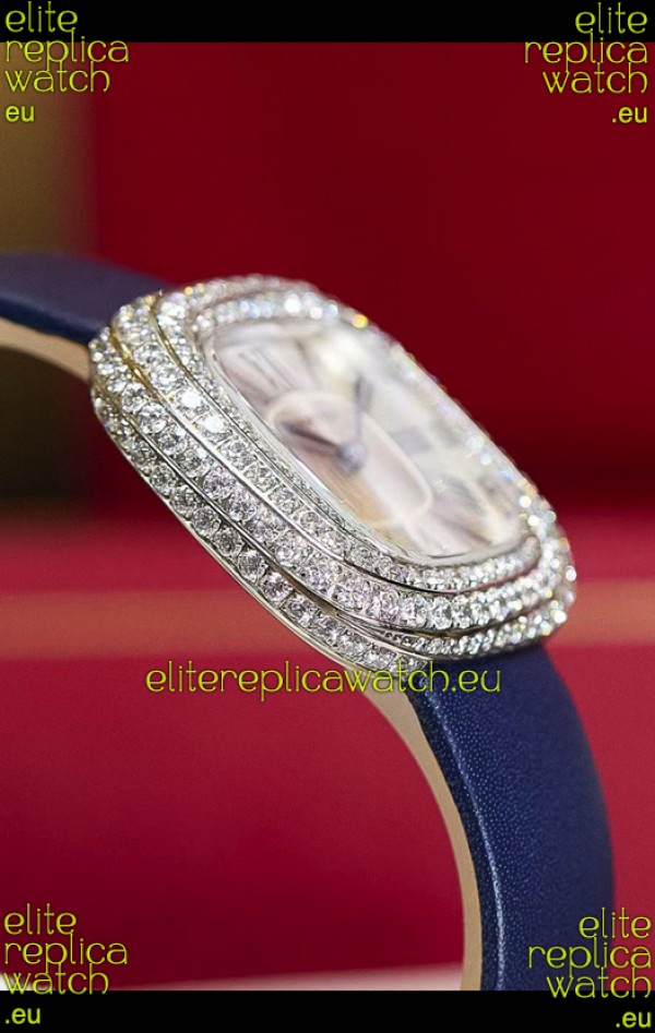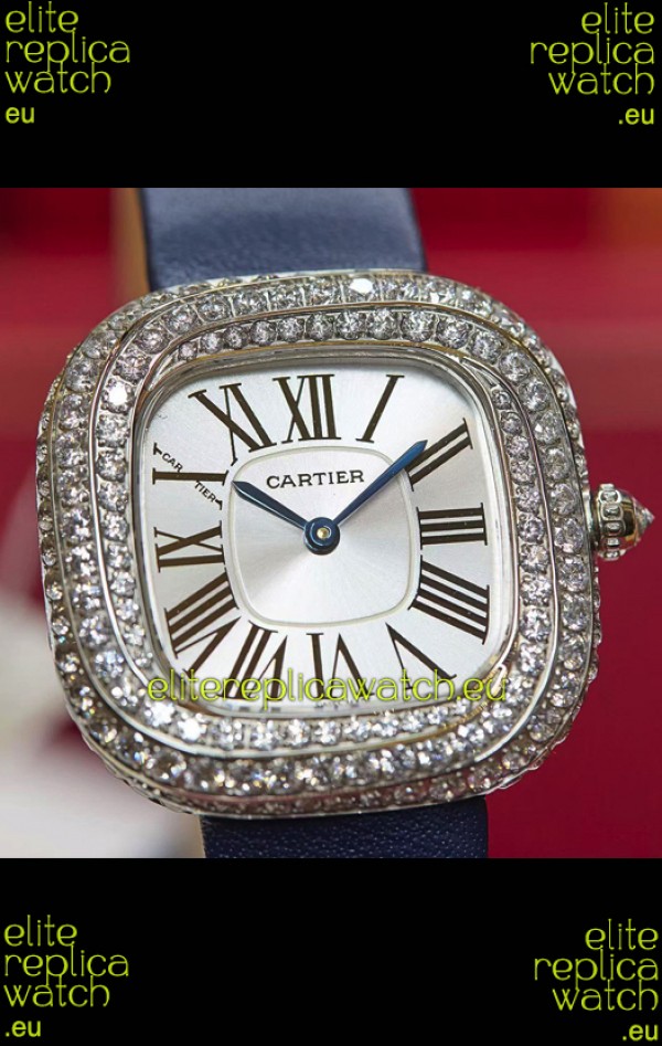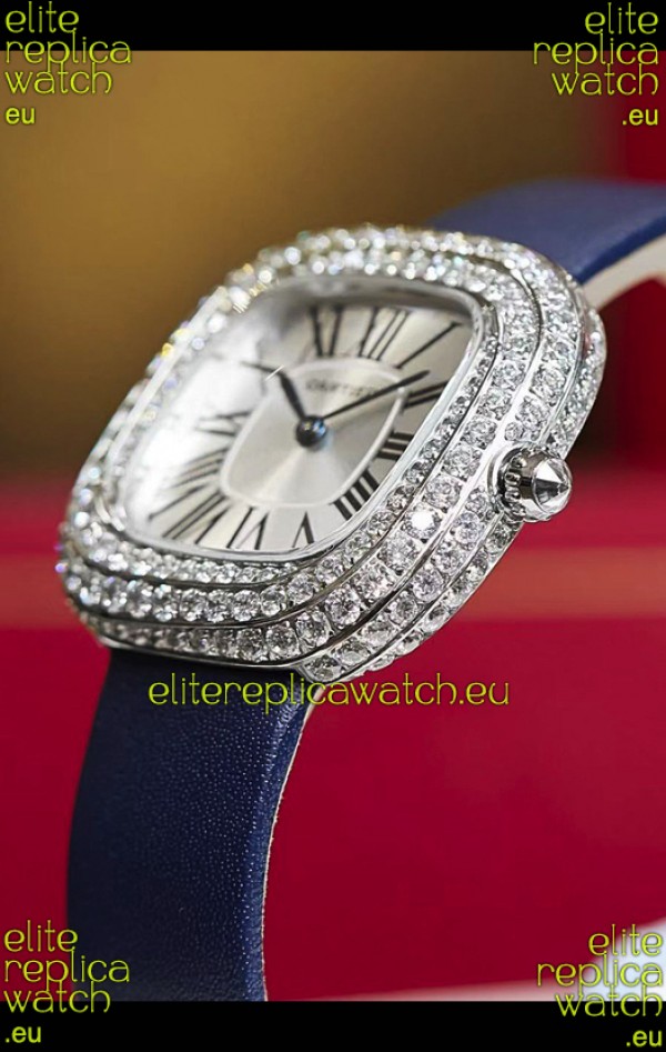 Coussin De Cartier Steel Watch Swiss Replica Watch Blue Strap