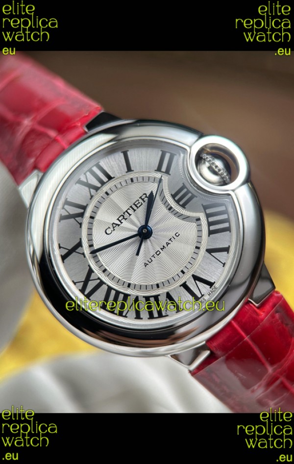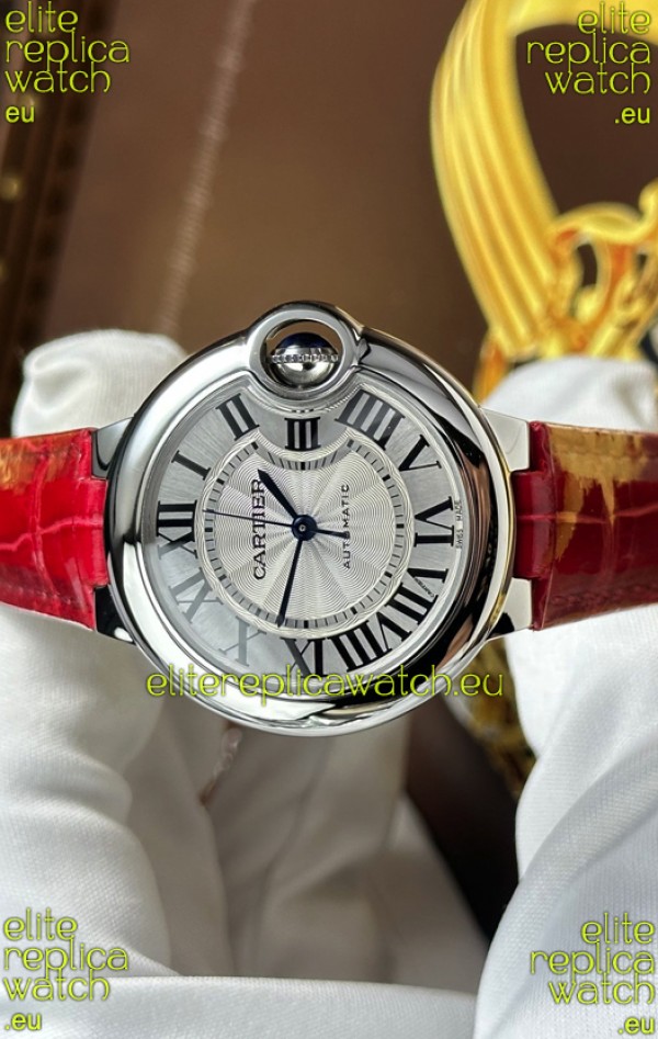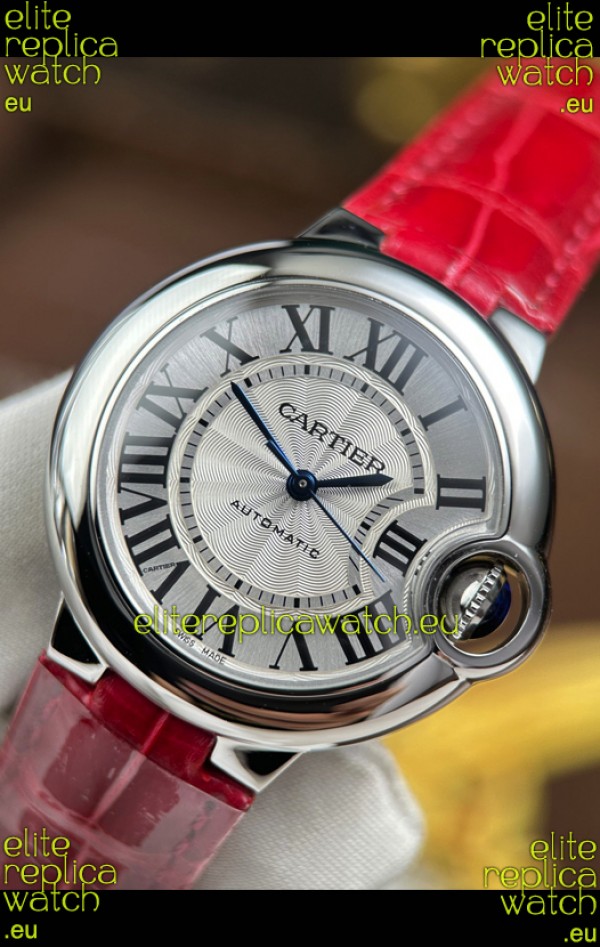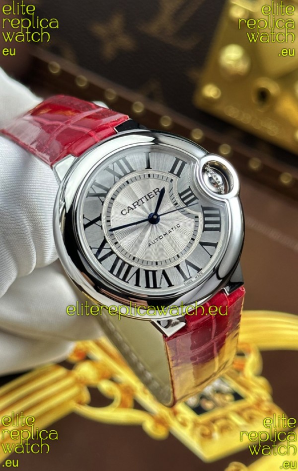 Ballon De Cartier Swiss Automatic 1:1 Mirror Quality 33MM in Burgundy Strap