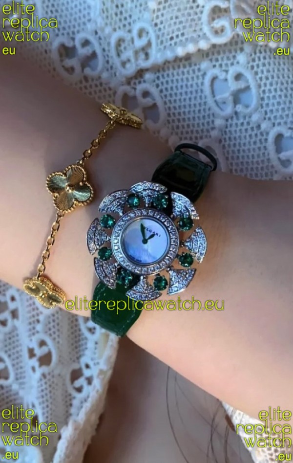 Bvlgari Divas's Dream Edition Watch in Steel Casing - Diamonds Paved Bezel Swiss Replica
