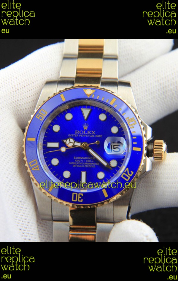 Rolex Submariner Japanese Replica Watch in 2 Tone Yellow Gold Casing Blue Dial