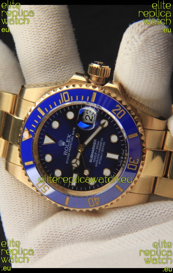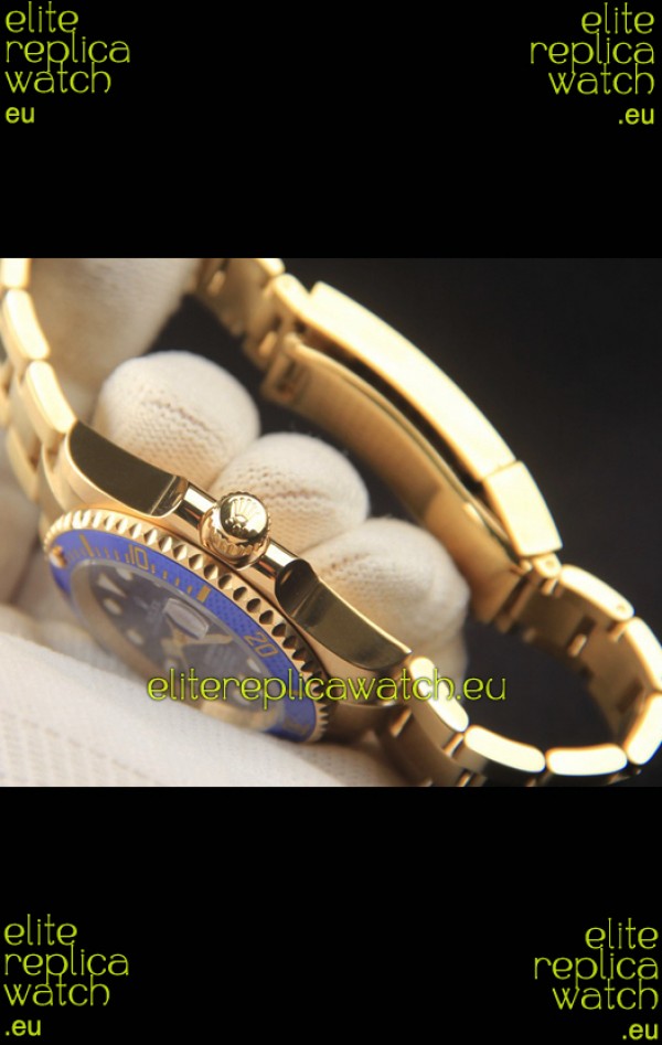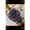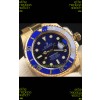 Rolex Submariner Japanese Replica Watch 904L Steel Yellow Gold - Ceramic Bezel in Blue