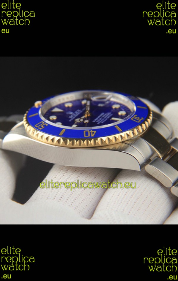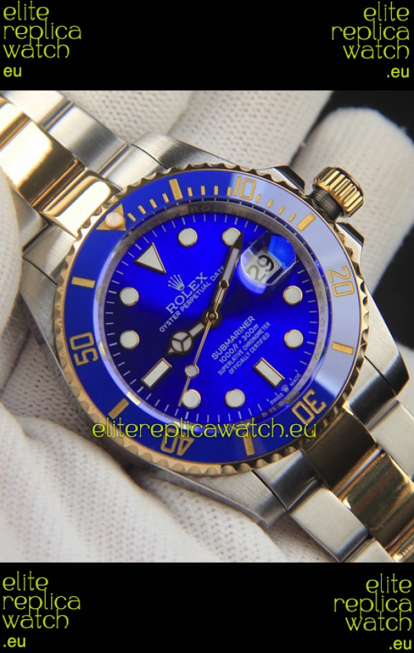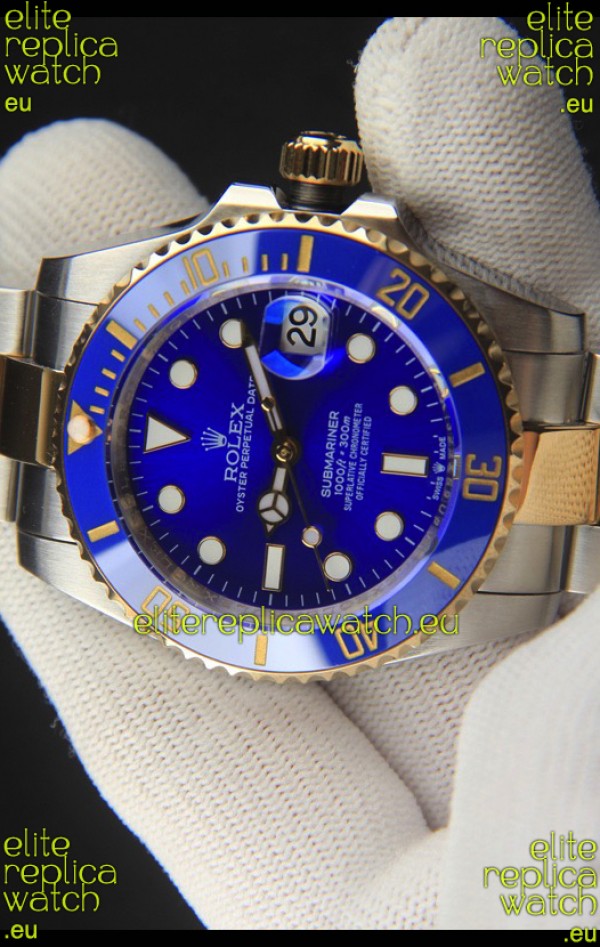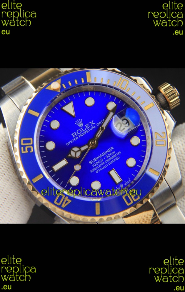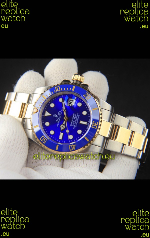 Rolex Submariner Japanese Replica Watch 904L 2 Tone Yellow Gold - Ceramic Bezel in Blue