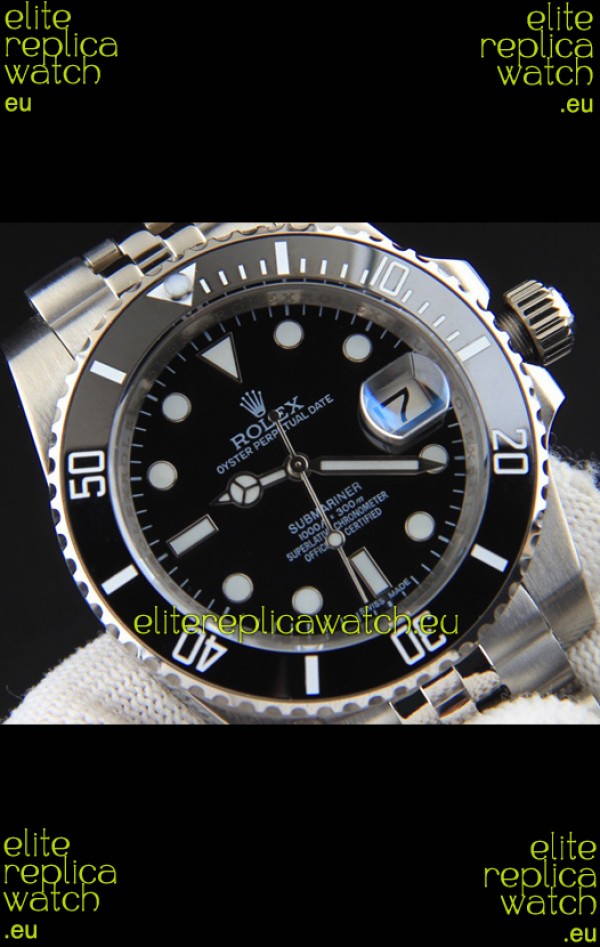 Rolex Submariner Japanese Replica Watch 904L Steel - Ceramic Bezel in Black