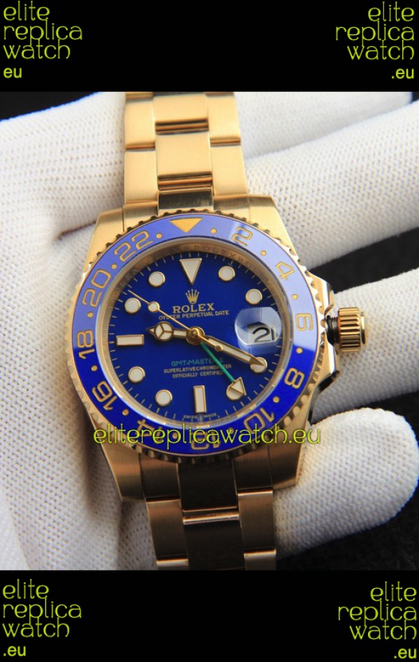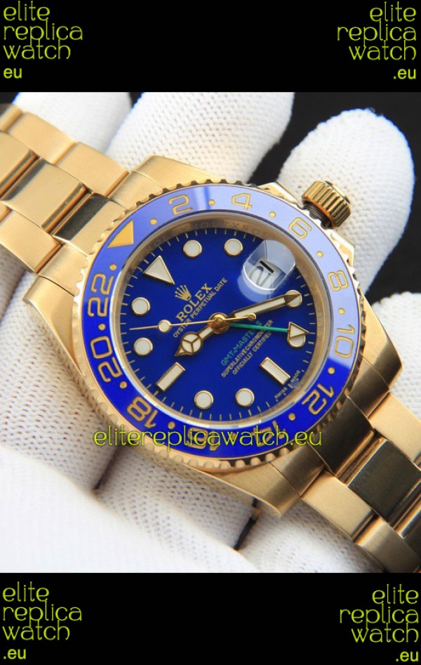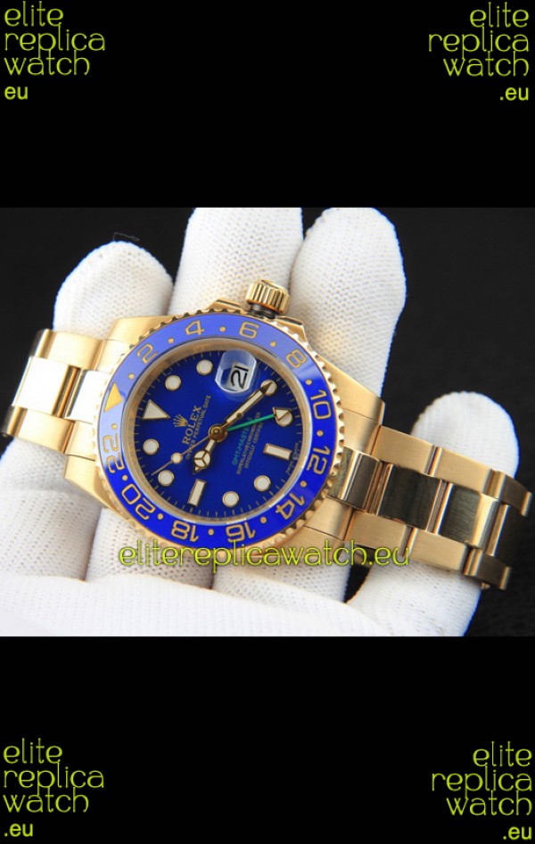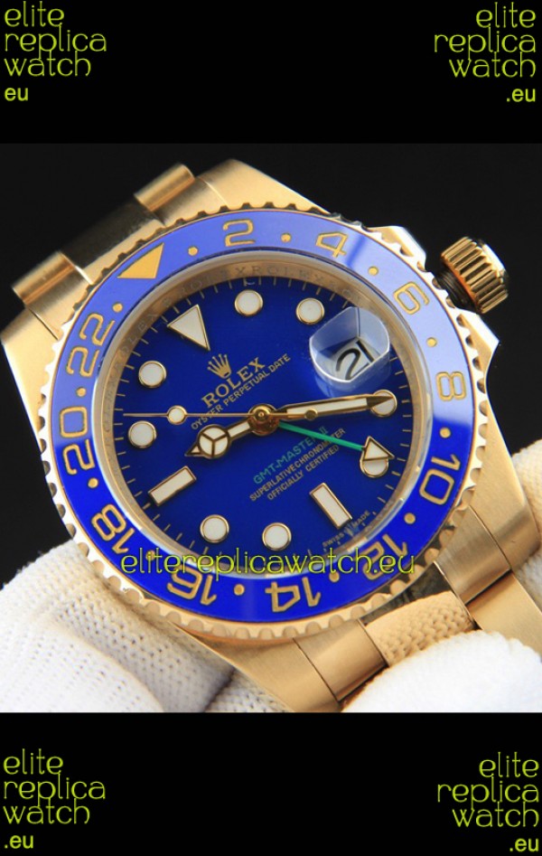Rolex GMT Masters II Rose Gold Plating Japanese Replica Watch Blue Dial