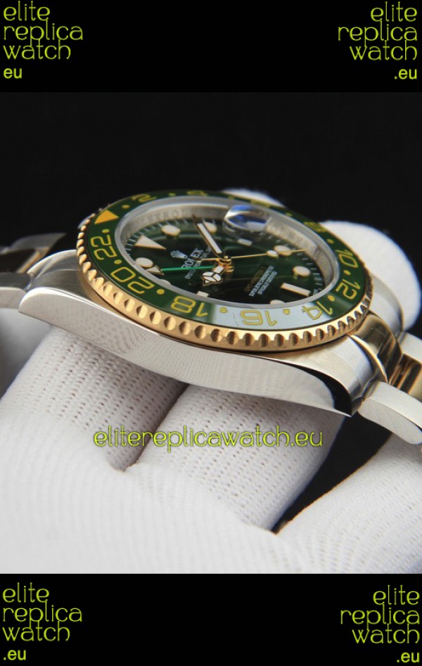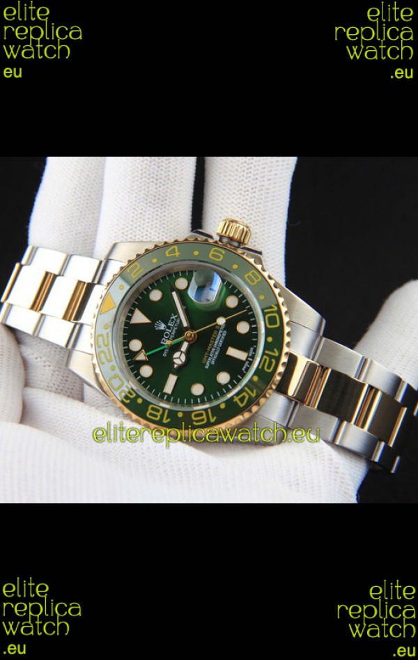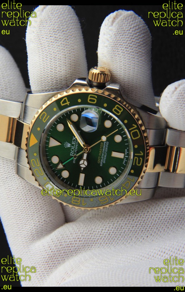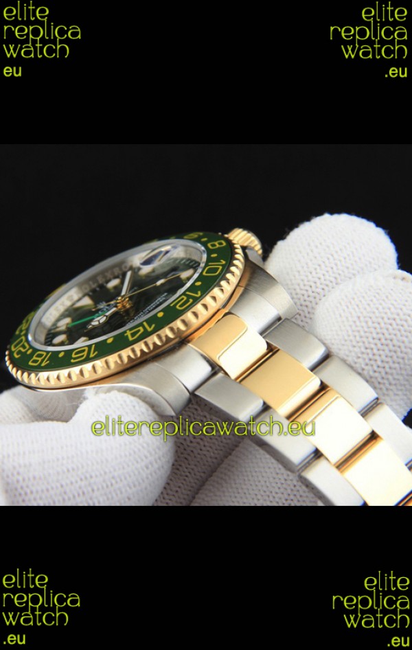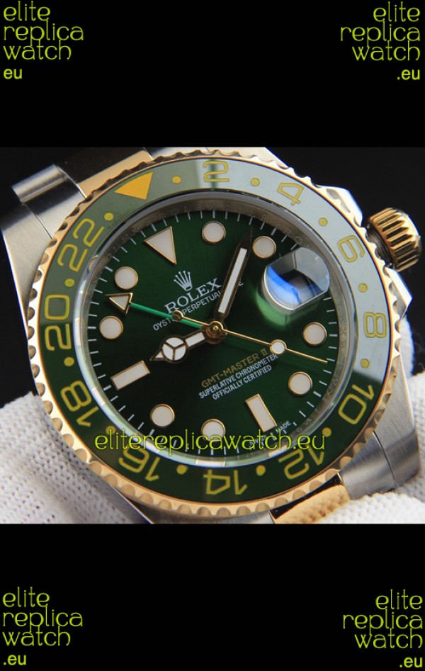 Rolex GMT Masters II 2 Tone Rose Gold Plating Japanese Replica Watch Green Dial