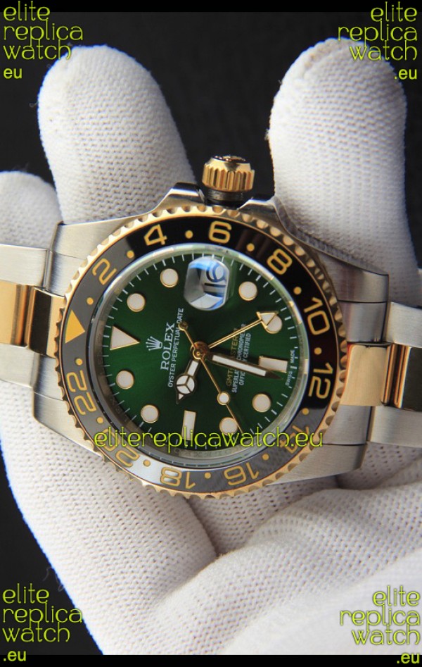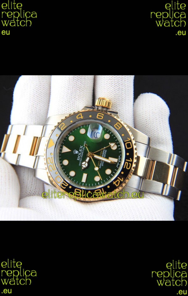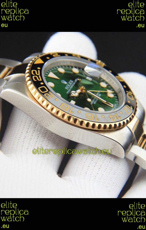 Rolex GMT Masters II 2 Tone Rose Gold Plating Japanese Replica Watch Green Dial