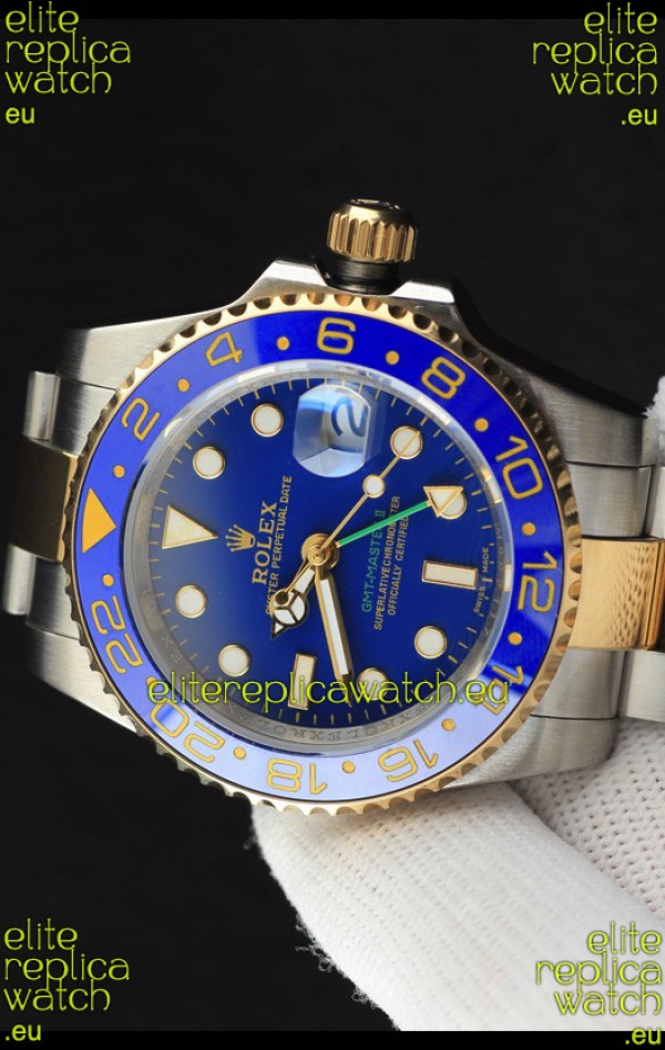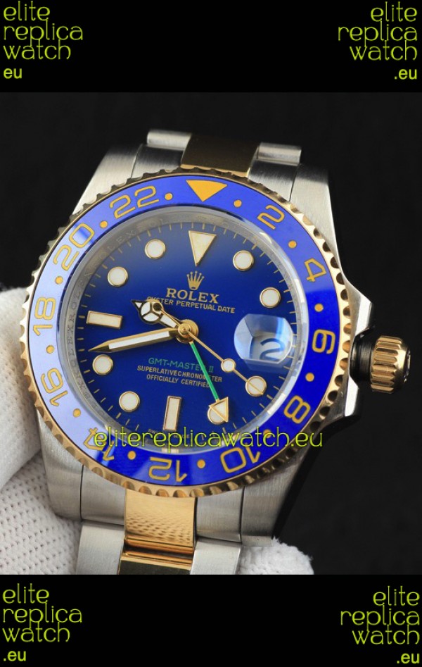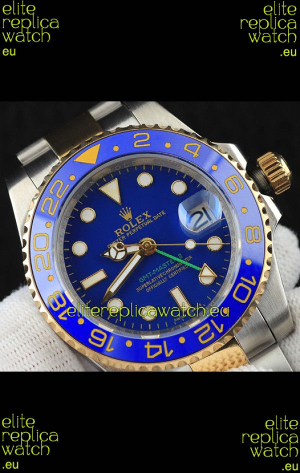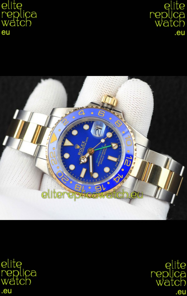 Rolex GMT Masters II 2 Tone Rose Gold Plating Japanese Replica Watch Blue Dial