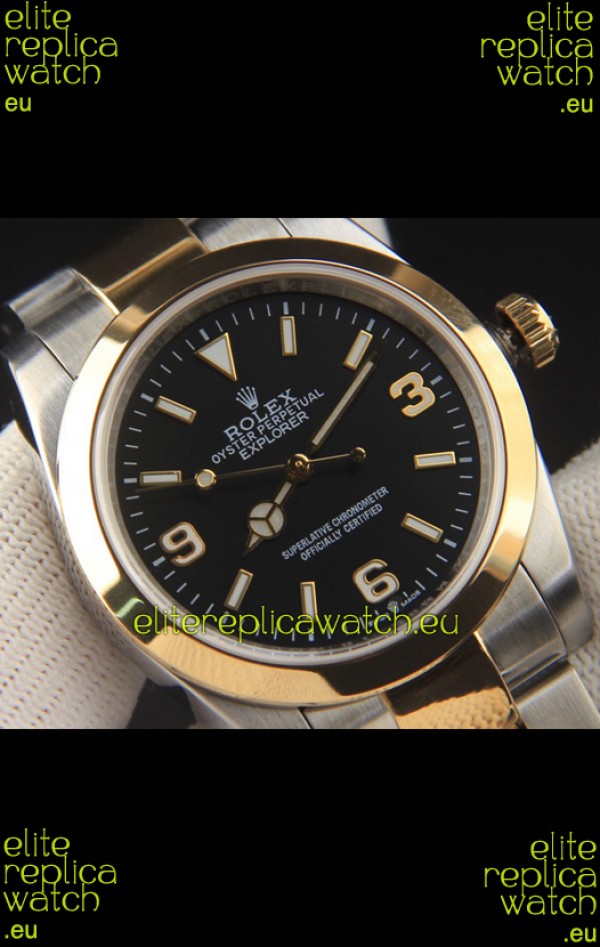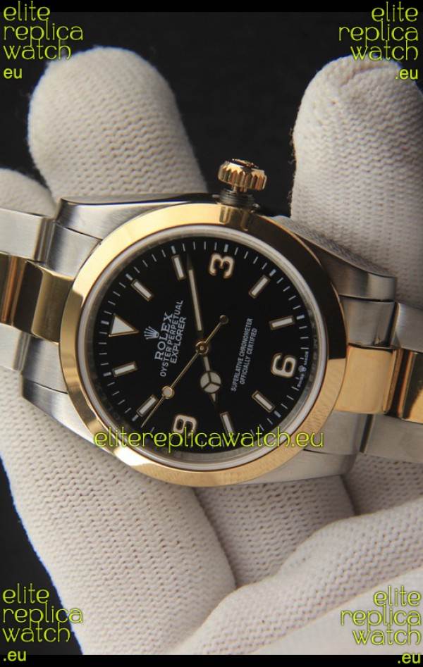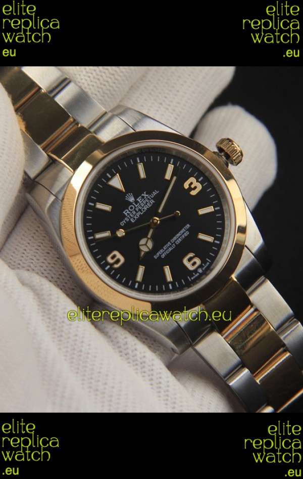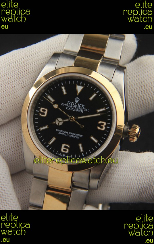 Rolex Explorer I Japanese Movement Replica Watch in Two Tone Black Dial 36MM