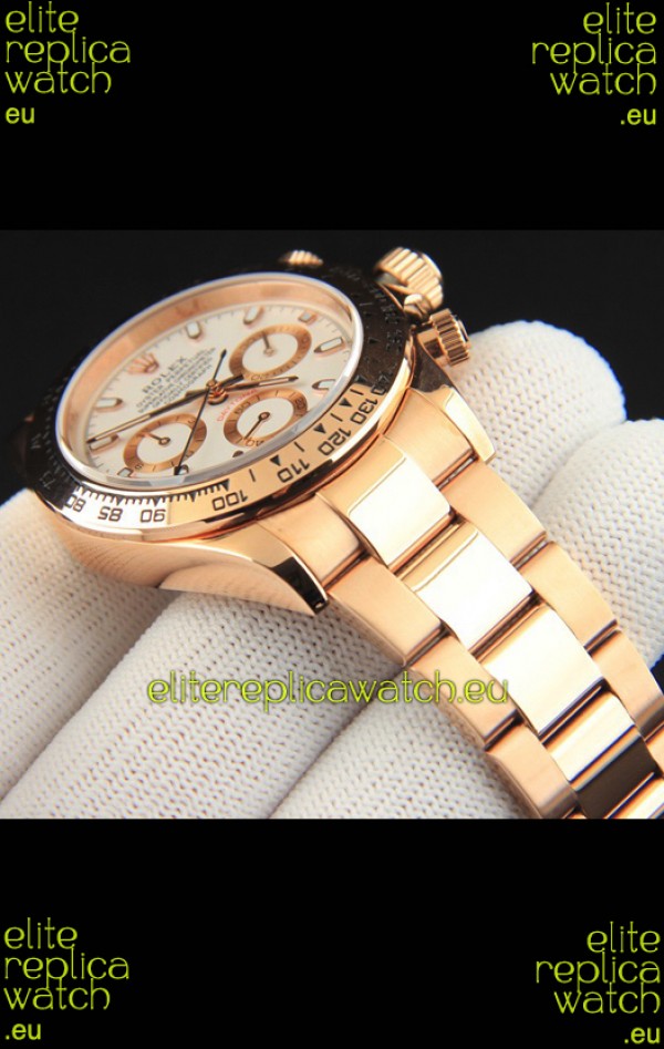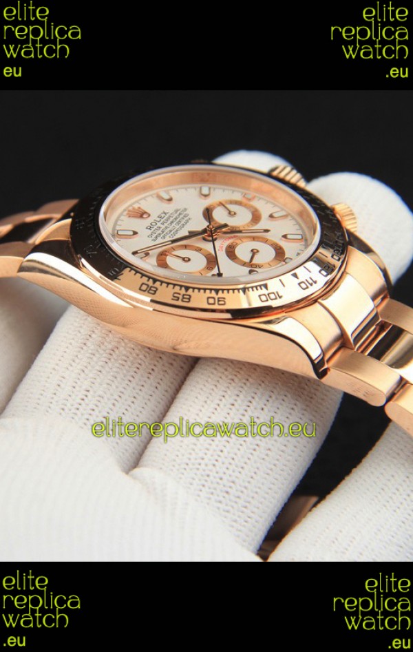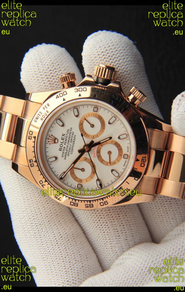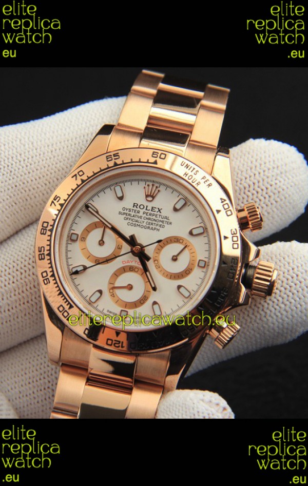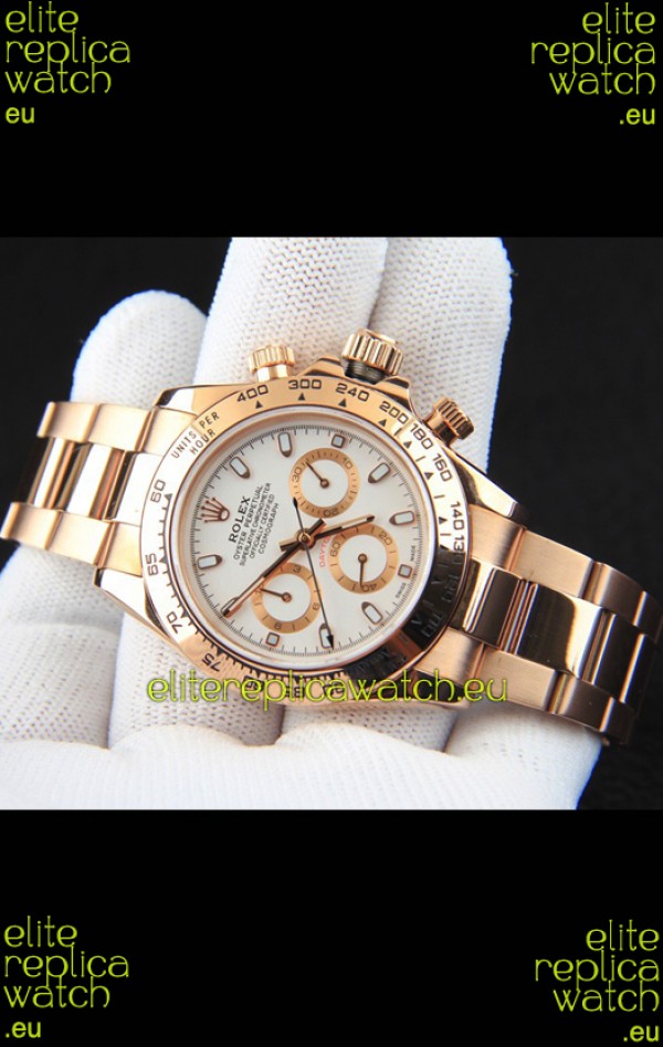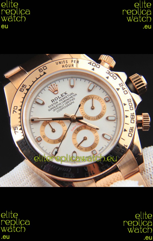 Rolex Daytona Japanese Movement Gold Casing Replica Watch in White Dial