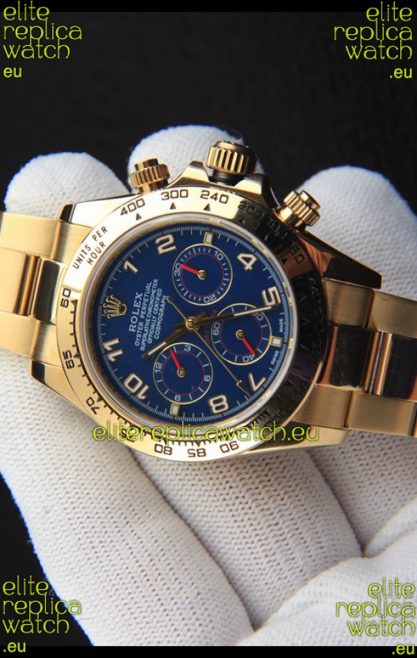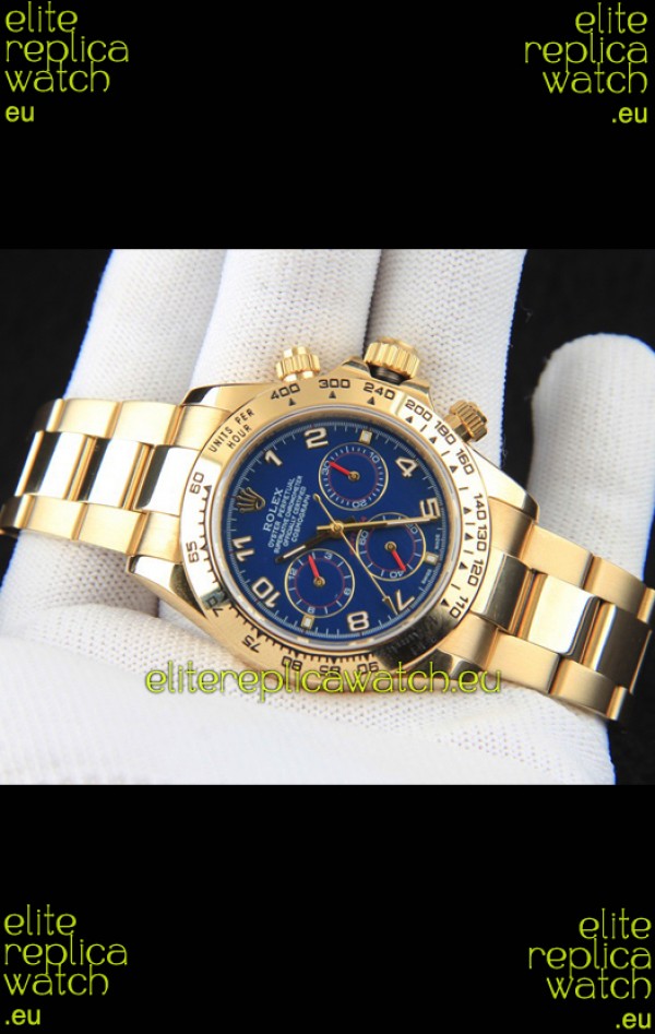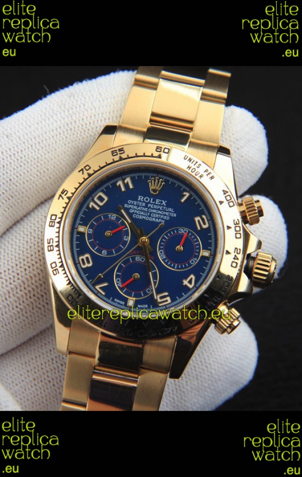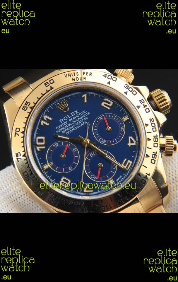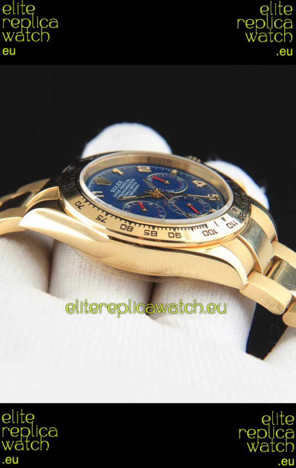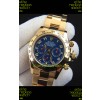 Rolex Daytona Japanese Movement Gold Casing Replica Watch in Blue Dial