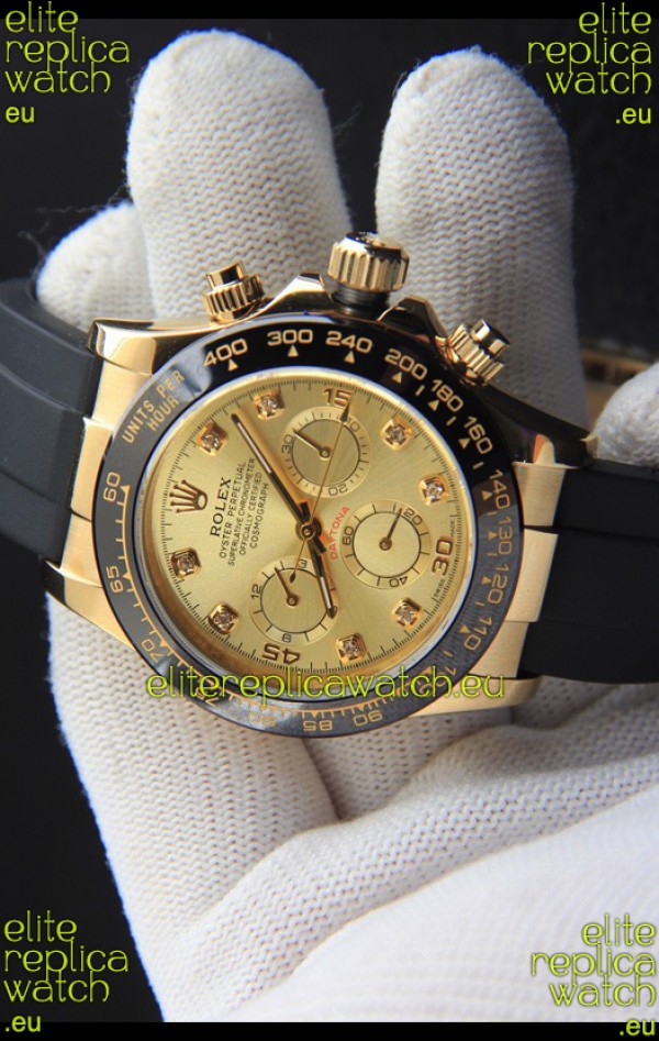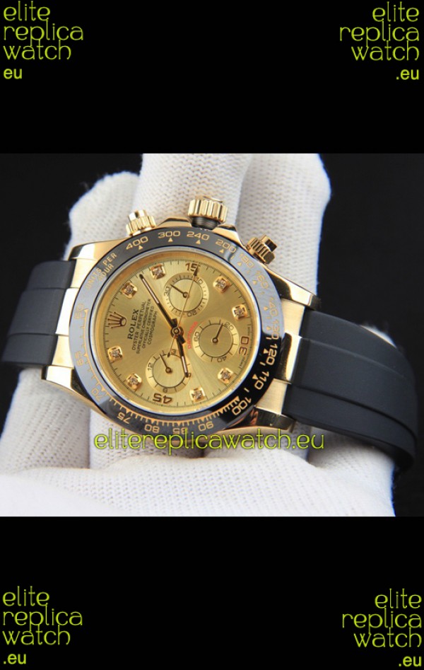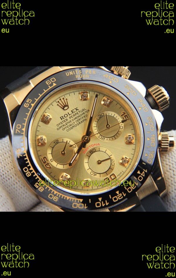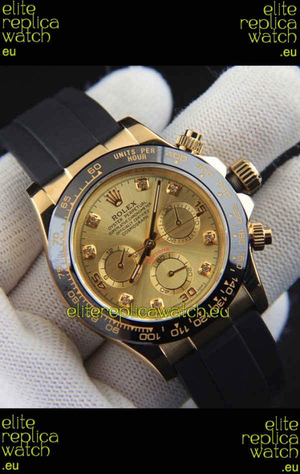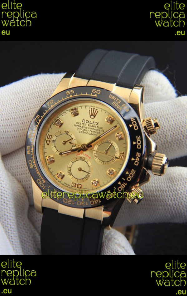 Rolex Daytona Japanese Movement Gold Casing Replica Watch in Gold Dial