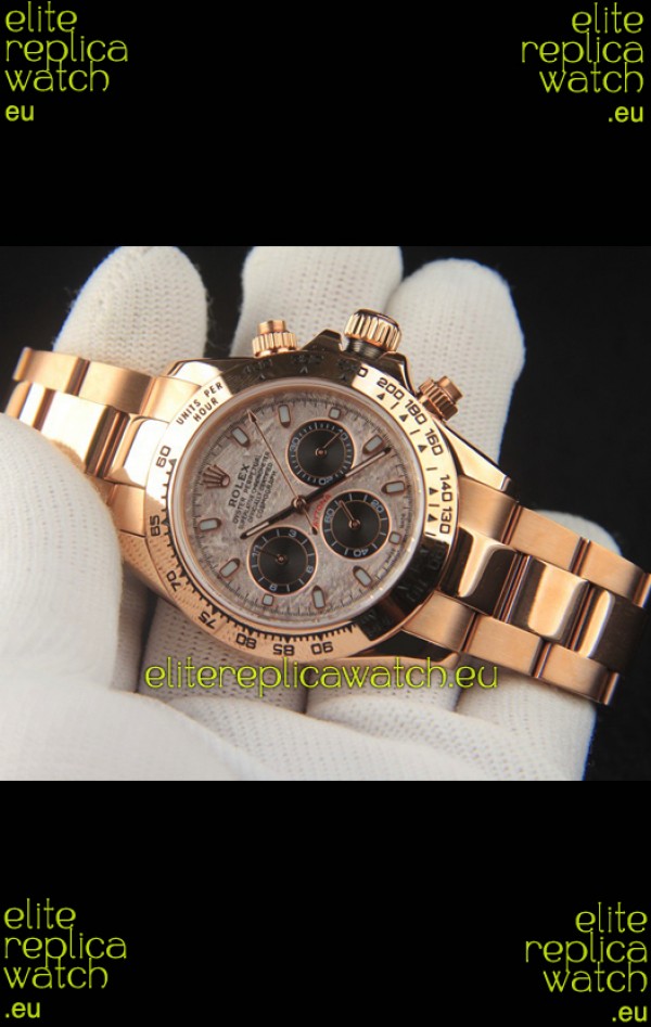 Rolex Daytona Japanese Movement Gold Casing Replica Watch in Meteorite Pattern Dial