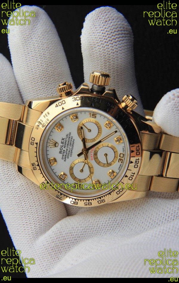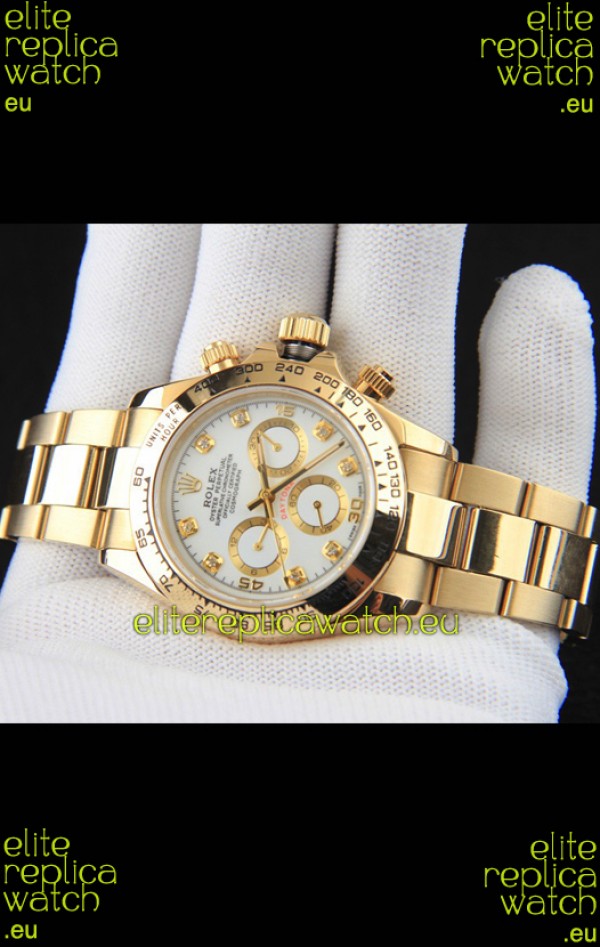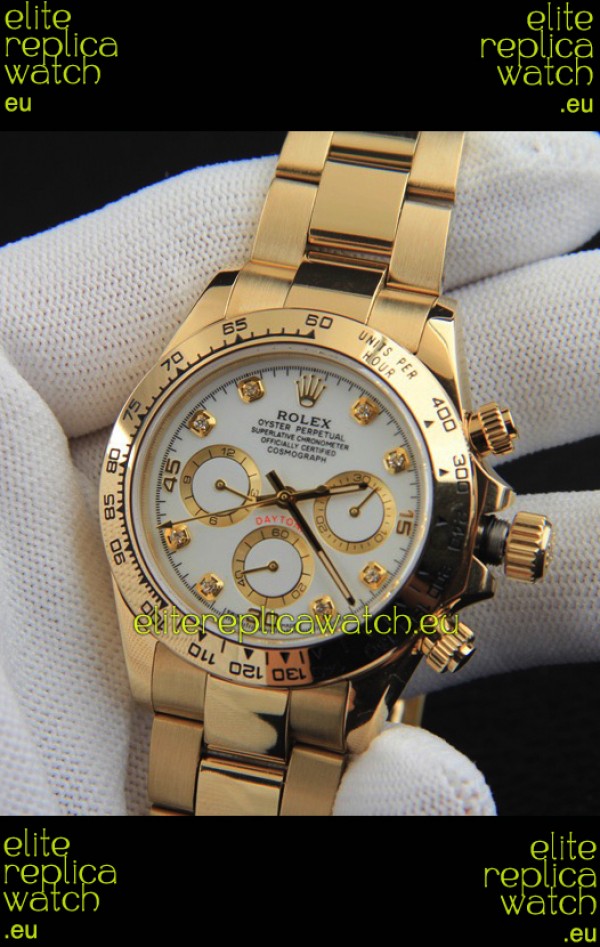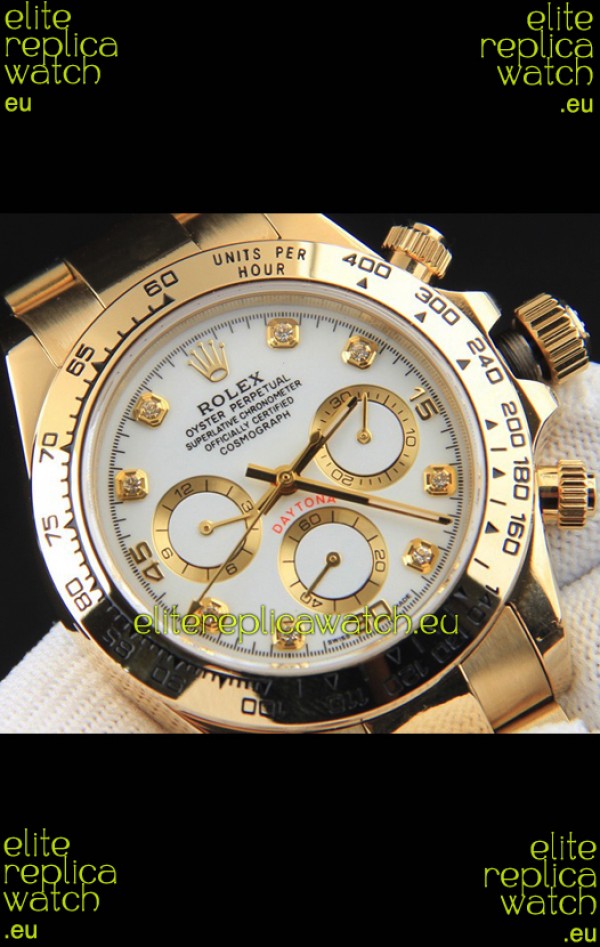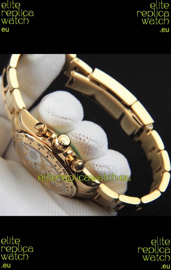 Rolex Daytona Japanese Movement Gold Casing Replica Watch in White Dial