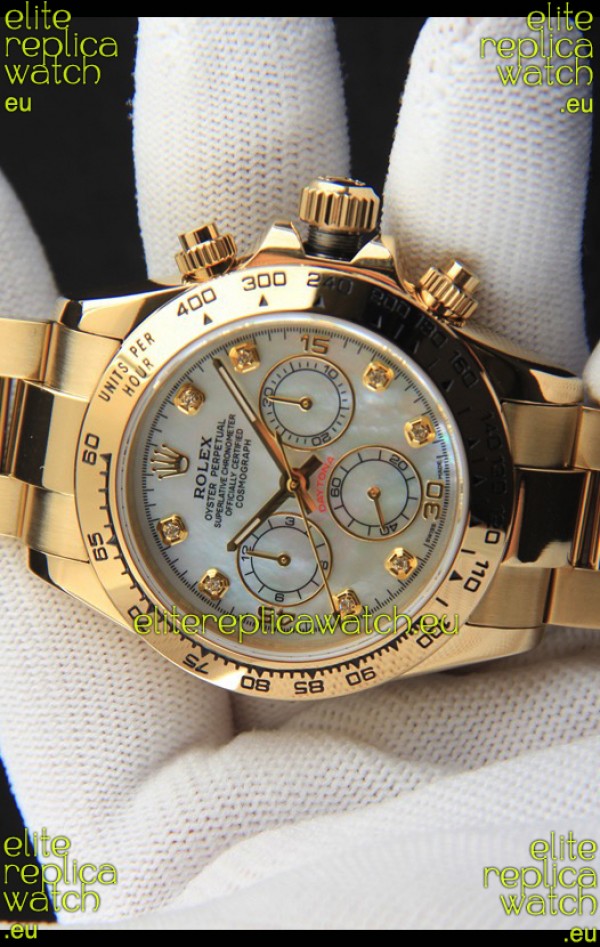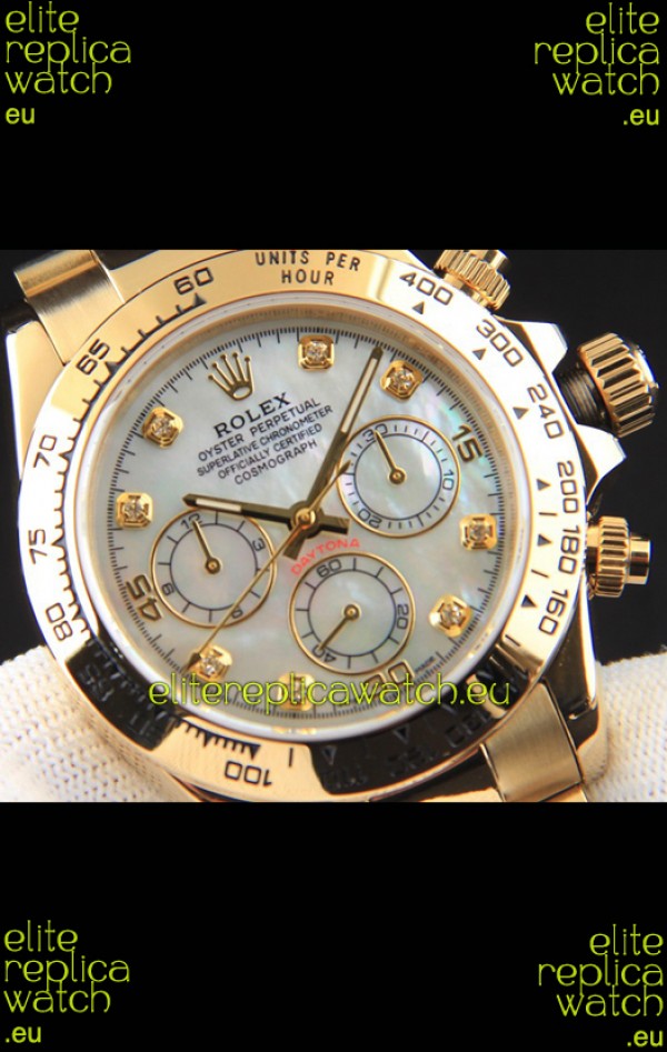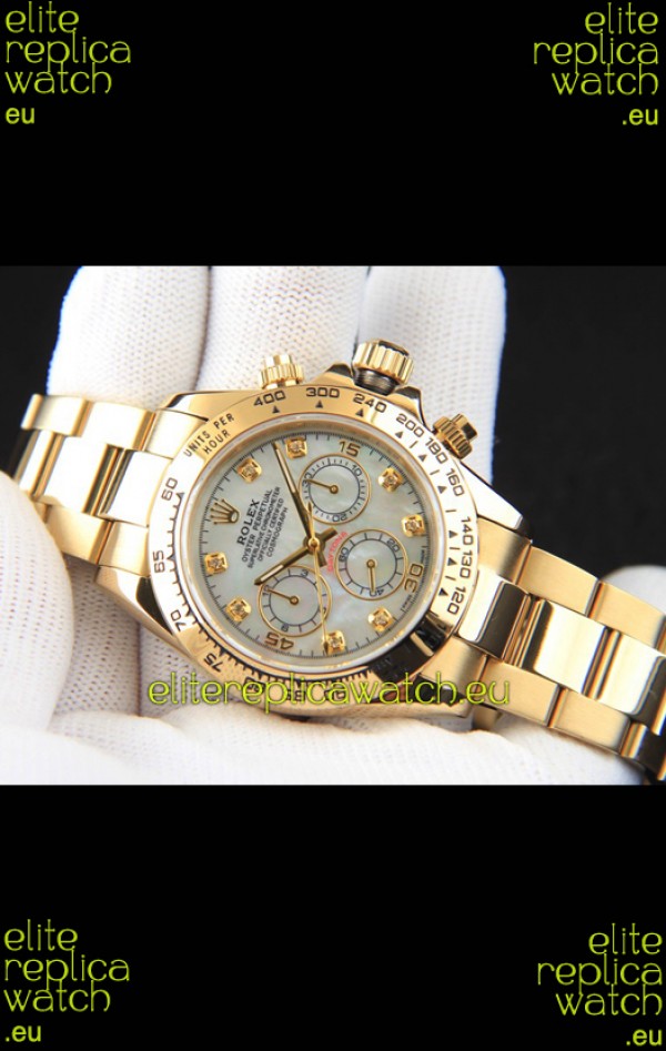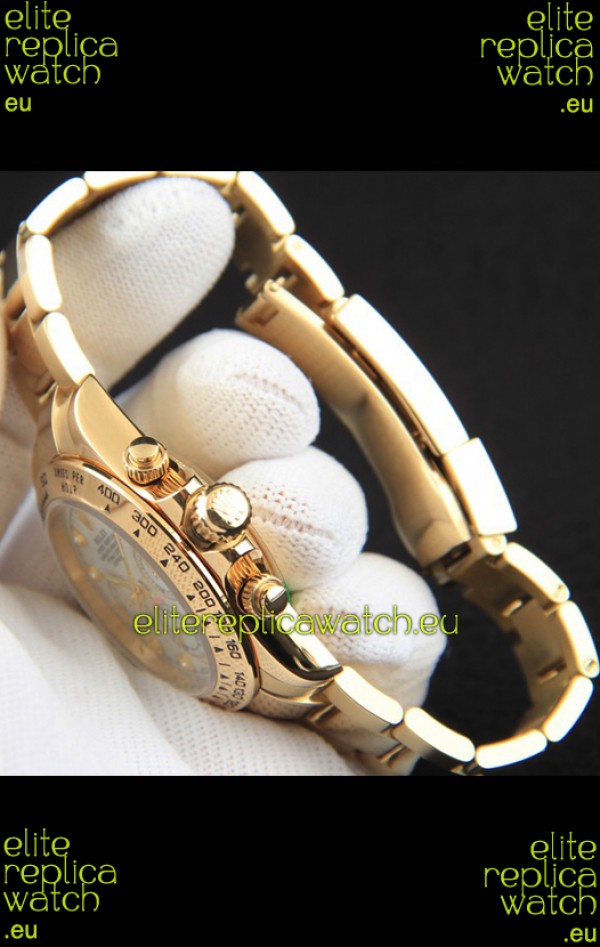 Rolex Daytona Japanese Movement Gold Casing Replica Watch in Mother of Pearl Dial