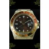 Rolex GMT Master II Swiss Replica Gold Watch in Dark Red Dial