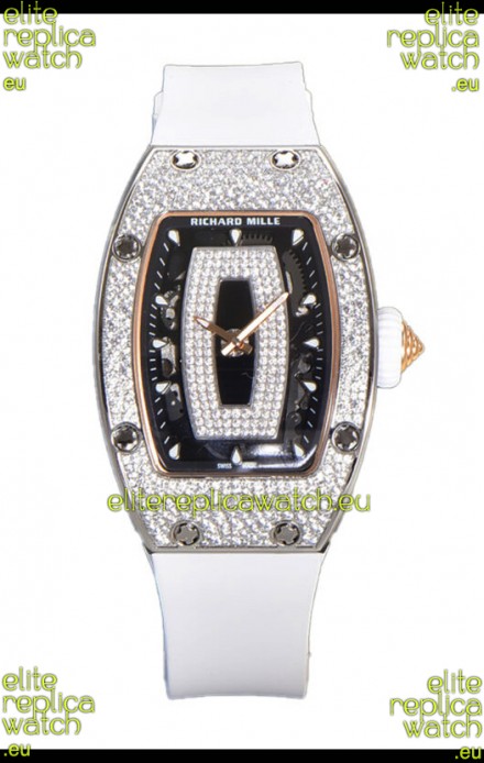 Richard Mille RM007 Diamonds Paved White Strap 904L Steel Superclone Swiss Watch