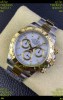 18K Yellow Gold Plating on 904L Steel Two Tone Strap with New style Flip-Lock Perfectly Replicated Clasp Complete with Rolex Markings and Engravings as per the Genuine