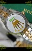 18K Yellow Gold Plating on 904L Stainless Steel Two Tone Strap with New Style Rolesor Deployant Buckle, End links match up Flush with the Case. - A Much Improved Datejust Strap Version