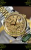 Gold Computer Dial with Diamonds Hour Numerals and Date Indicator