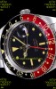 Black Dial with Yellow Vintage Hour Markers along with Functional Fourth Red GMT Hand which can be set independently via the Stem