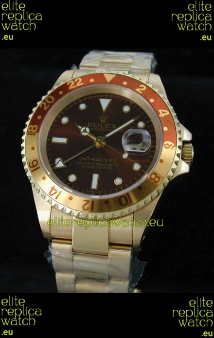 Rolex GMT Master II Swiss Replica Gold Watch in Dark Red Dial