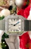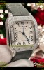 Santos De Cartier Watch in White Dial 39.50MM MOSSANITES Paved Bezel Swiss Replica Watch